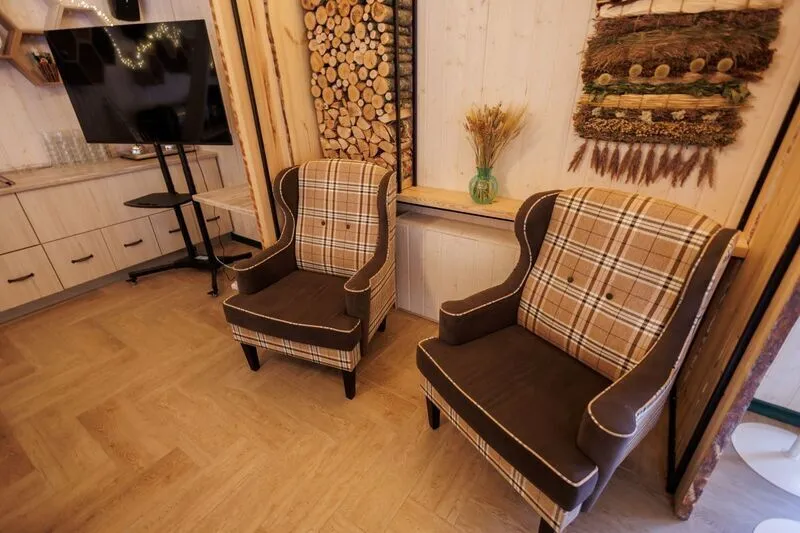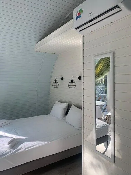 Для гостей подготовлены уютные номера, оснащенные мягкими кроватями, телевизором, холодильником и чайником. А в собственной ванной комнате имеется необходимая сантехника, гигиенический набор и полотенца. Для желающих уединиться с природой предоставляются благоустроенные домики с кондиционером и террасой.
