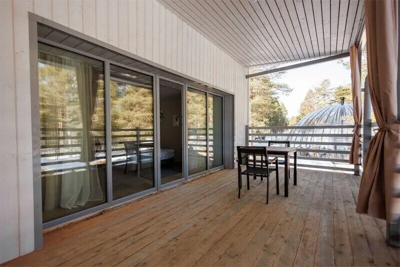 Проживание с домашними животными (небольшими собачками весом до 5 кг и высотой в холке 30 см) возможно при наличии ветеринарного паспорта с отметками текущего года (только в домах категории «Шале», «ДомДом», «Дом-сфера»).