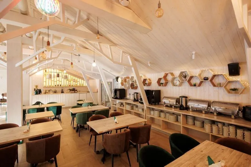 Отдыхающим предлагаются вкусные завтраки по системе «шведский стол». Помимо этого, на территории работает ресторан «Лес» с традиционными местными блюдами.