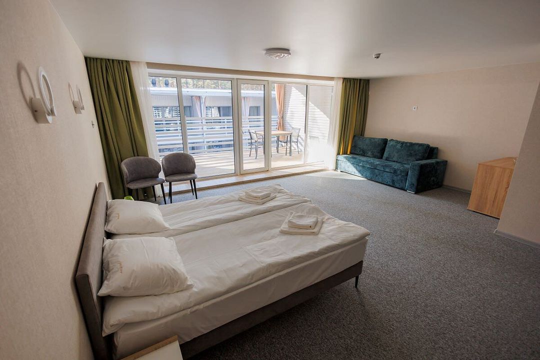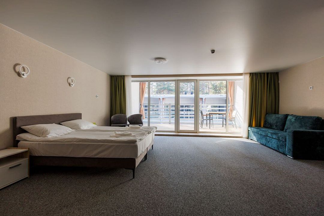 Семейный отдыхДостоинстваПраздновали здесь день рождения) Жили в сосновом бору, номера отличные, укомплектованы всем необходимым. Питание в ресторане было на высоте - очень вкусное! Завтраки включены в стоимость. Нам не приходилось скучать, так как было множество активностей: прокат лодок, катамаранов, квадроциклов и многое другое. Нам все понравилось, приедем еще.