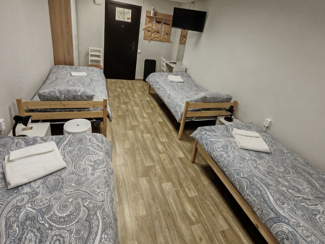 Номер с четырмя односпальными кроватями, телевизор, стол, шкаф, вешалка для одежды, санузлы и душевые на этаже,В номере