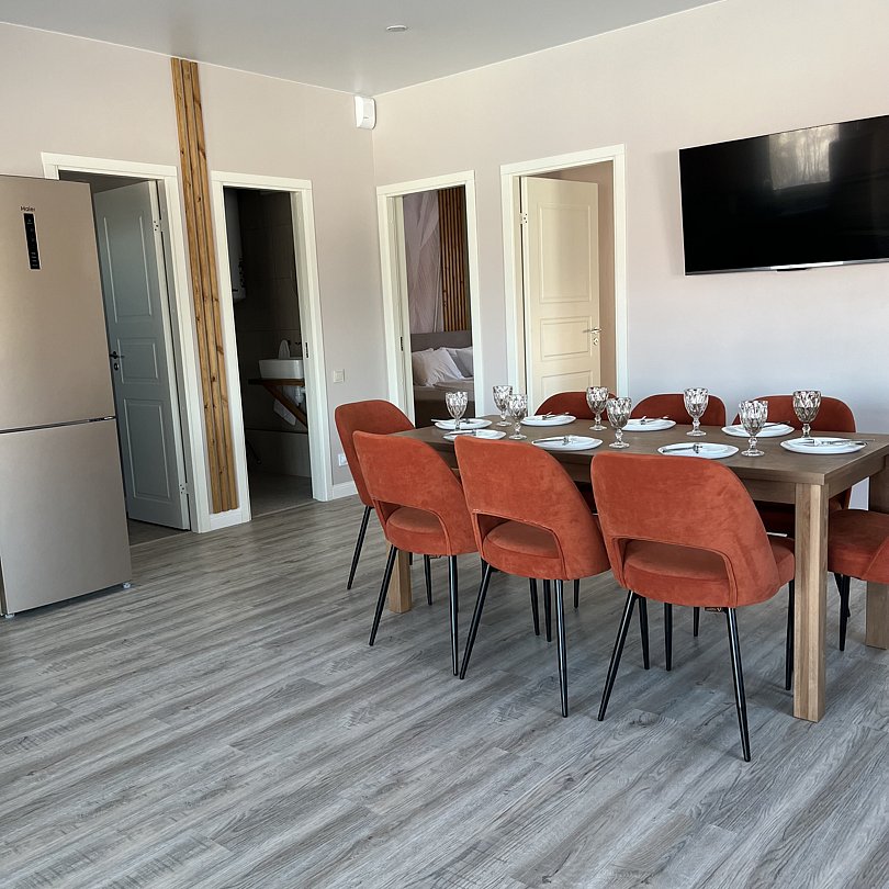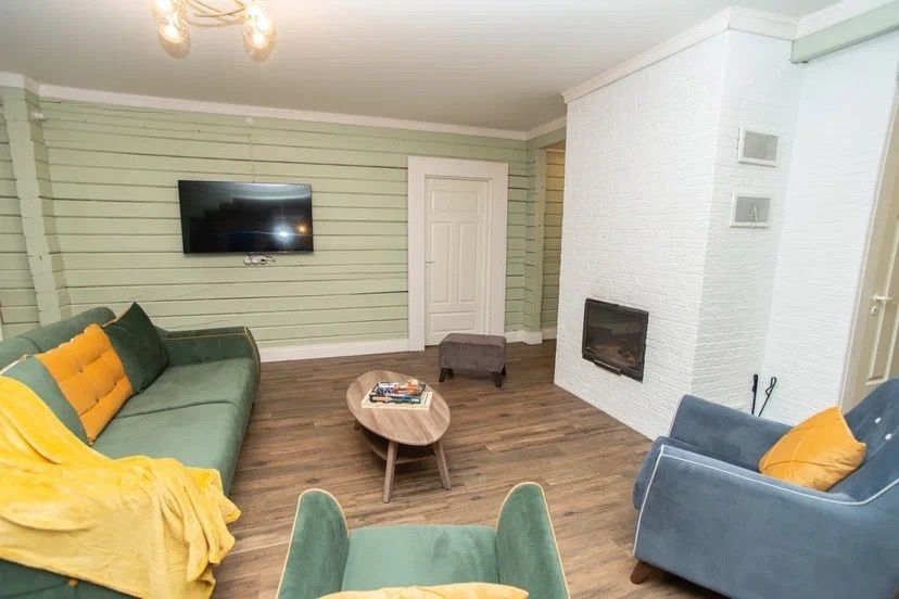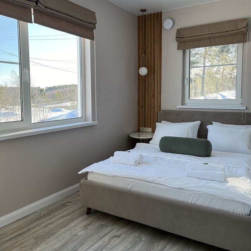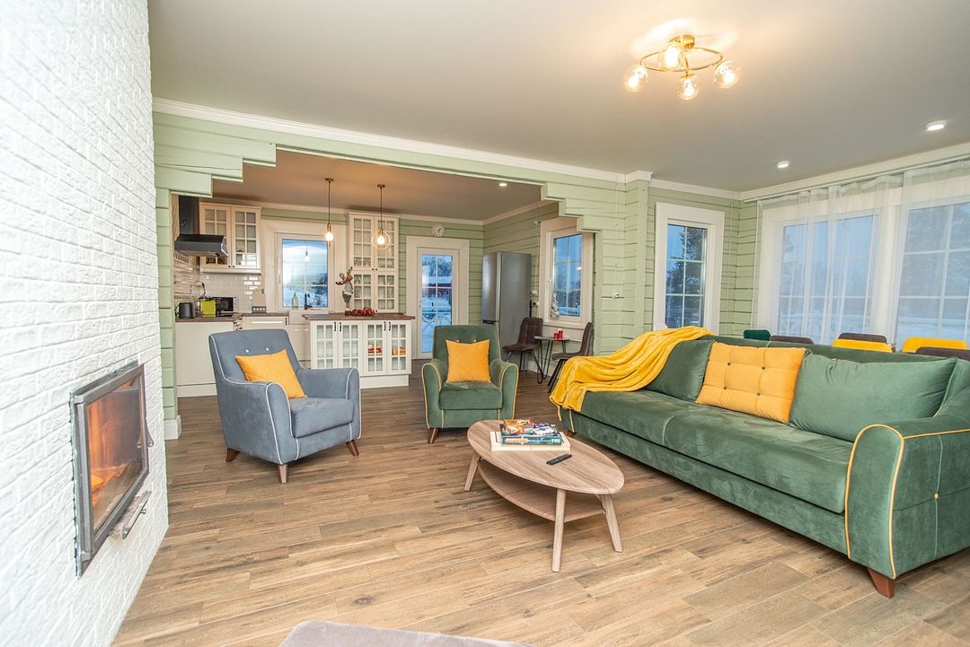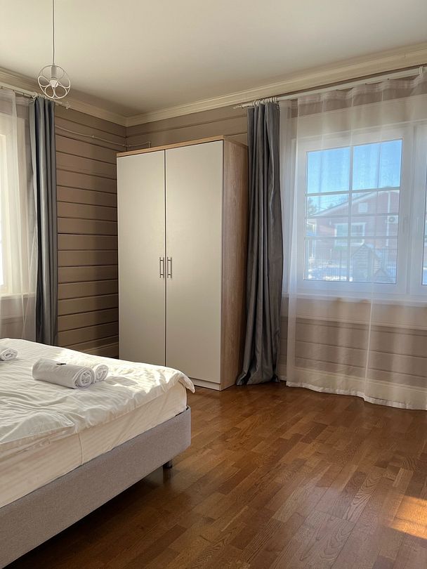 Просторный тёплый дом площадью 200 кв.м идеально подойдёт для отдыха большой компании или нескольких семей. В доме — 5 спален, гостиная с камином, кухня, 2 санузла и гардеробная.