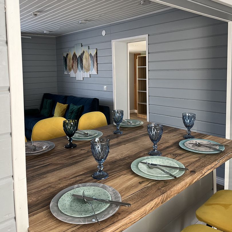 Дом рассчитан на 4 гостей, но при необходимости возможно размещение ещё 1–2 человек на дополнительном месте (раскладной диван).