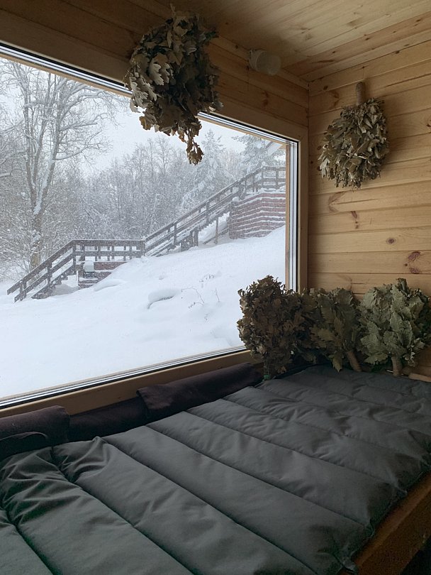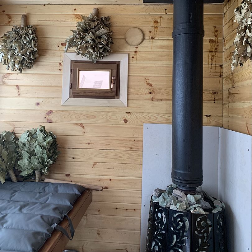 • Баня с чаном и вениками (берёза, дуб, кедр, можжевельник)