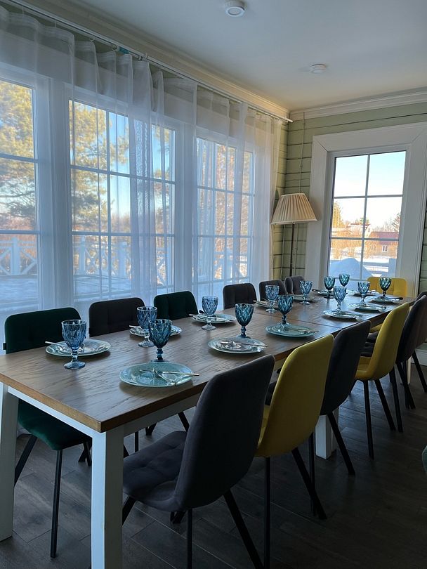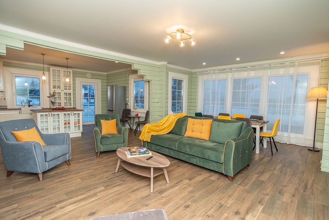 Жили мы в большом доме 200кв.Дом настолько чист и просторен,что хочется остаться там жить..Природа вокруг, сказочная.
