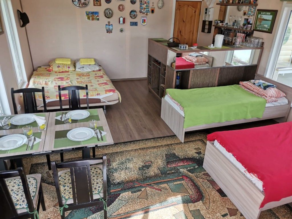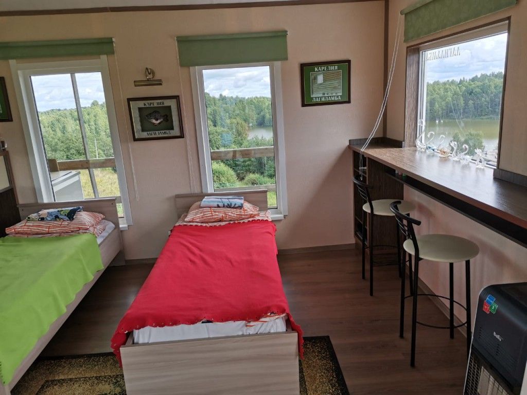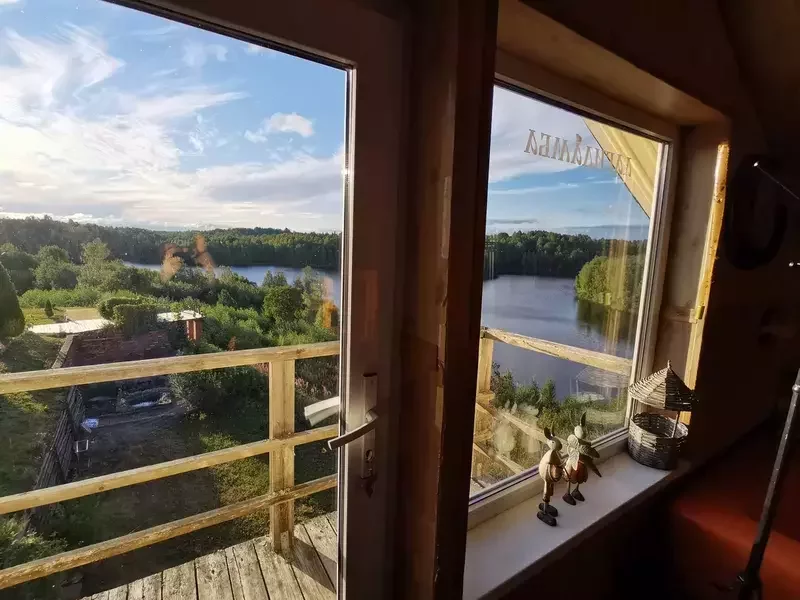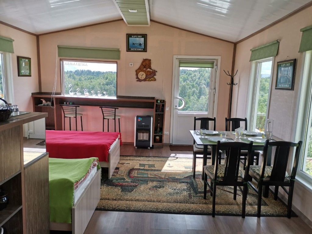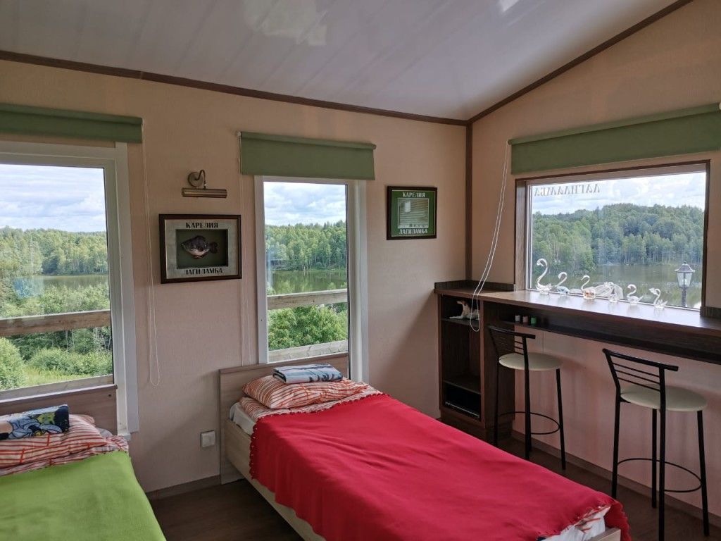 В старинной карельской деревне, на берегу двух красивых лесных озер, с панорамным видом из окна расположен дом-студия на 4 человека.