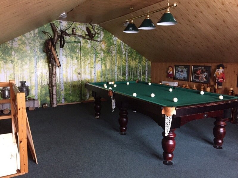 В доме холодная и горячая вода, ванная комната, кухня с бытовой техникой, полы с подогревом. В комнате одна двуспальная кровать и две односпальные. барная стойка. На территории баня с бассейном и бильярдной комнатой (оплачивается отдельно) 3000 ₽ сеанс 2 часа. Рыбалка, охота, зимой снегоходы, ватрушки, лыжи, настольные игры.