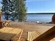 О доме: одноэтажный жилой дом для круглогодичного проживания площадью 36 кв.м. и террасой 18 кв.м. Из окон открывается панорама на Онежское озеро и лес на берегу.