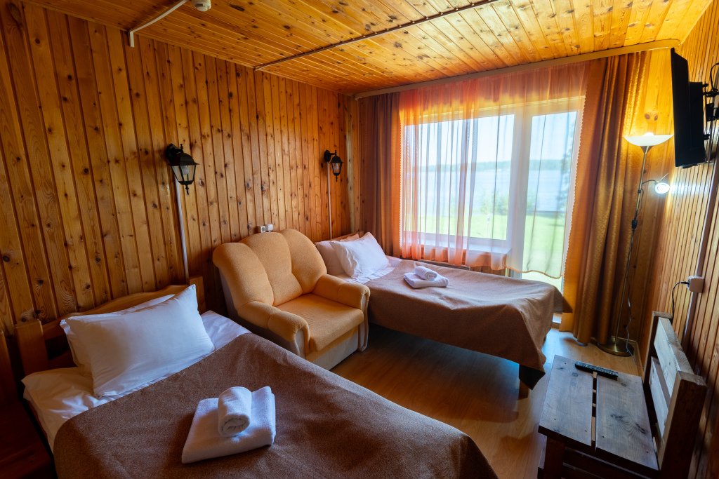 Путешествие с семьейКрасота природы неописуема!Природа потрясающе красивая. На территории проживают лайки, гуси и олень. Можно взять лодку или велосипед на прокат. Озеро так и манит к прогулке или рыбалке. Столовая находится отдельно от жилого корпуса. Еда вкусная, сытная, но однообразная, завтраки шведский стол, ежедневно одно и то же. Там же работает бар. Есть замечательная баня. Корпус стоит на мысе который выдается в озеро, так что из любого окна открывается прекрасный вид. В комнате удобные кровати, шкаф, кресло. Удобно, что есть возможность включить самим отопление. В санузле накопительный водонагреватель, жидкое мыло, полотенца. Вечером тиши стоит необыкновенная. На базе организовывают игры, мастер-классы и можно сходить в гости к шаману)))). Прекрасное место для отдыха, только добираться туда своим ходом очень и очень сложно, либо на своей машине, либо договариваться о трансфере.