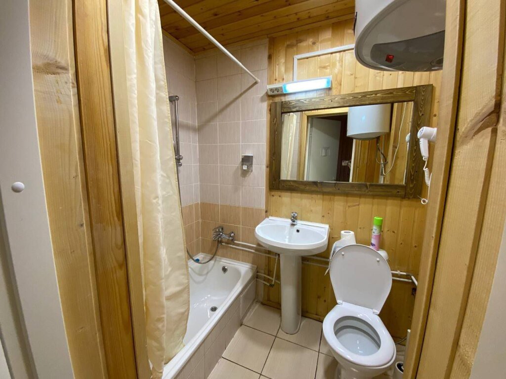 В корпусе есть номера с двумя отдельными комнатами, в каждой из которых: две кровати, платяной шкаф и прикроватные тумбочки. В общем холле — обеденный стол, четыре табурета, чайник, микроволновая печь. Санузел оборудован на два номера.