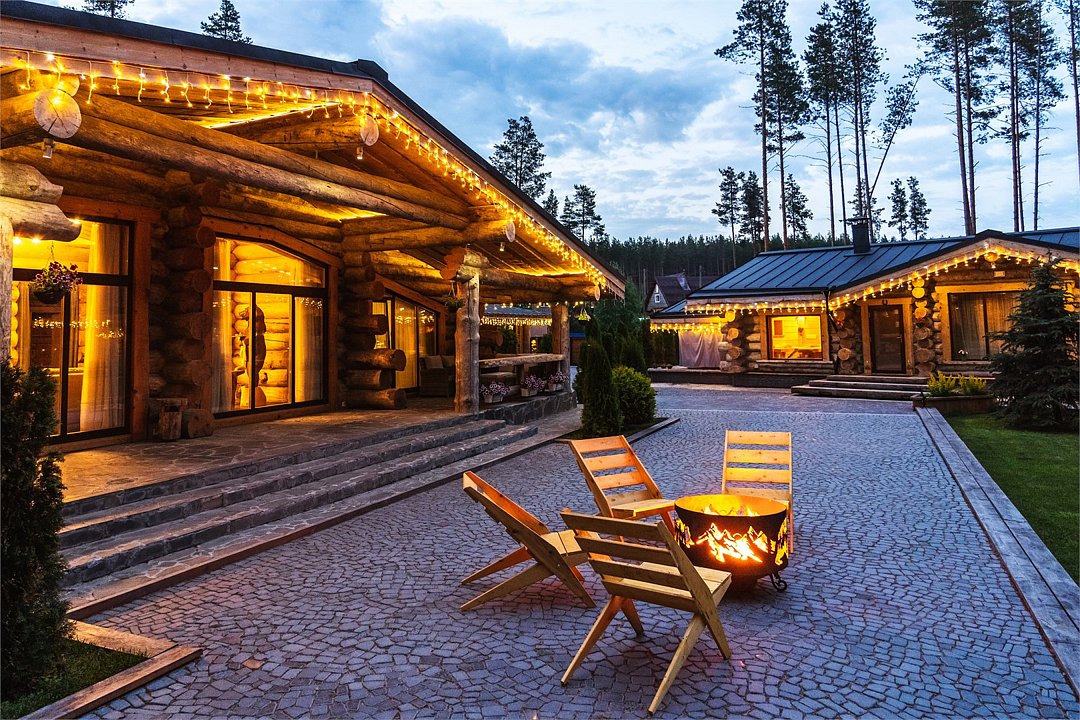 Комплекс расположен на первой линии в 30 метрах от Онежского озера. На закрытой территории находятся дом-шале с каминным залом и 5-ю спальнями, уникальная баня с двумя парилками и 4 купелями, большая беседка и собственный причал.Услуги и удобства