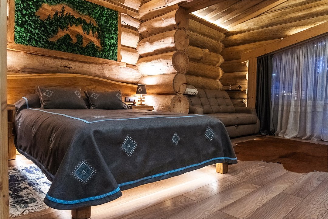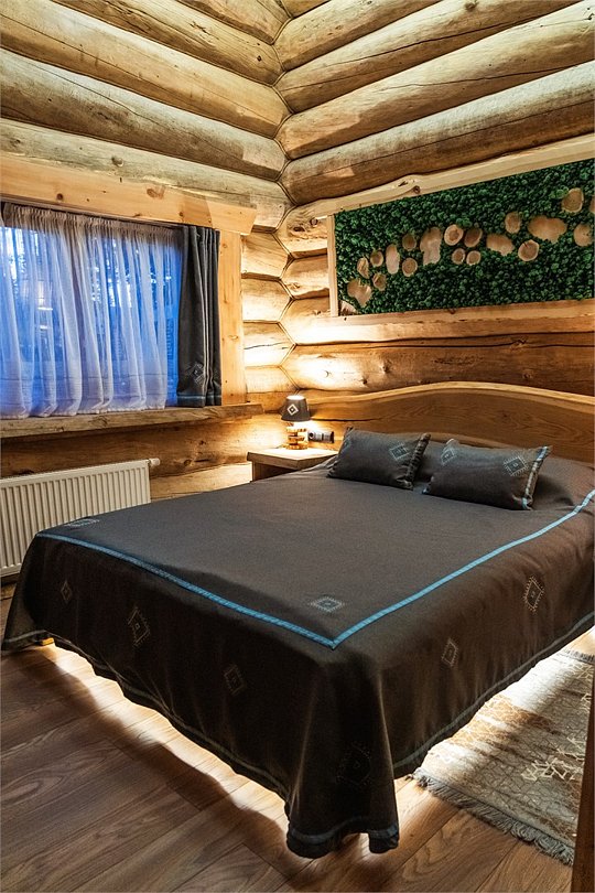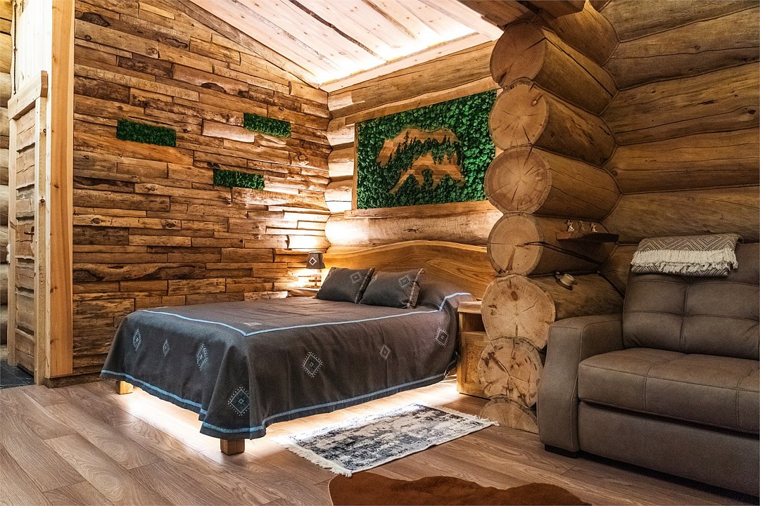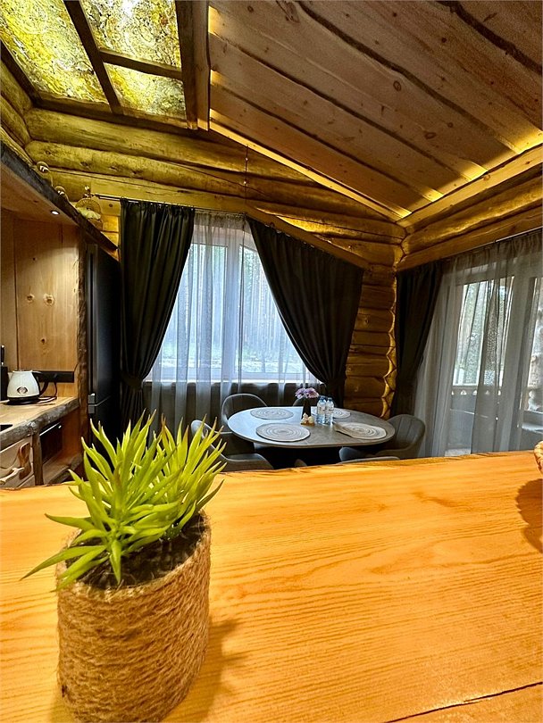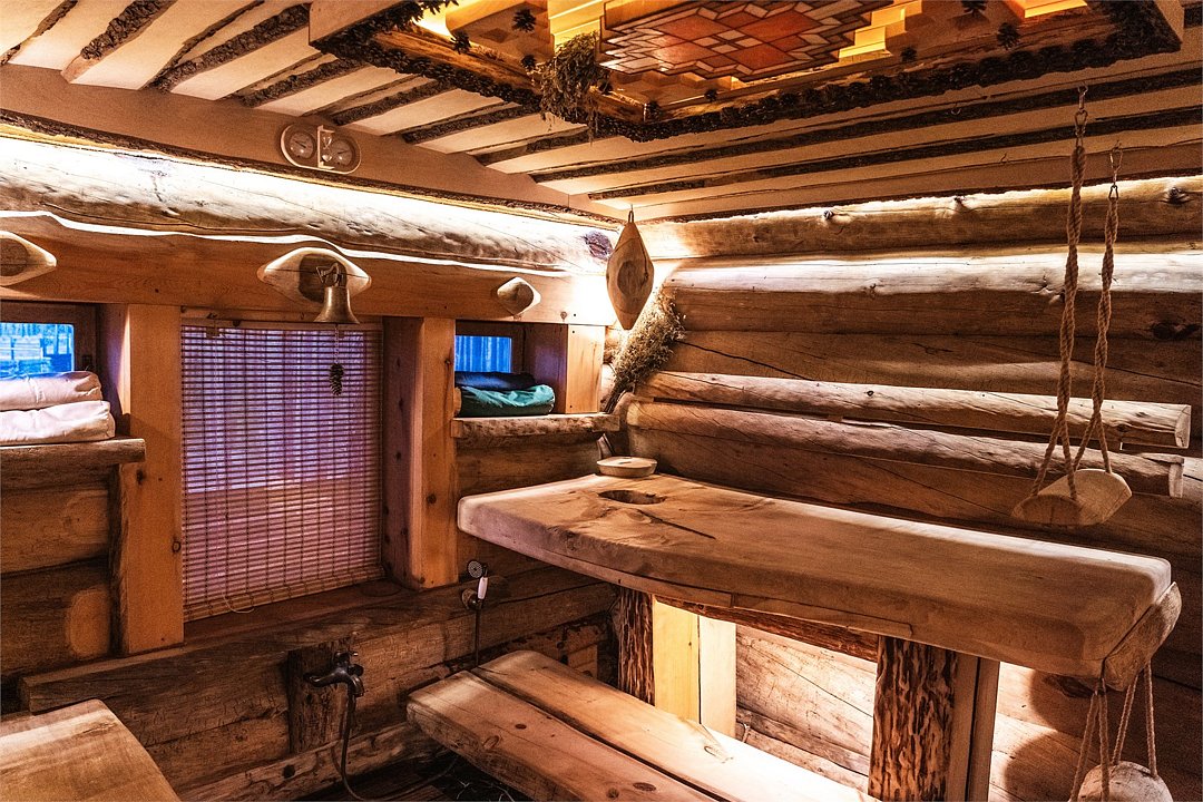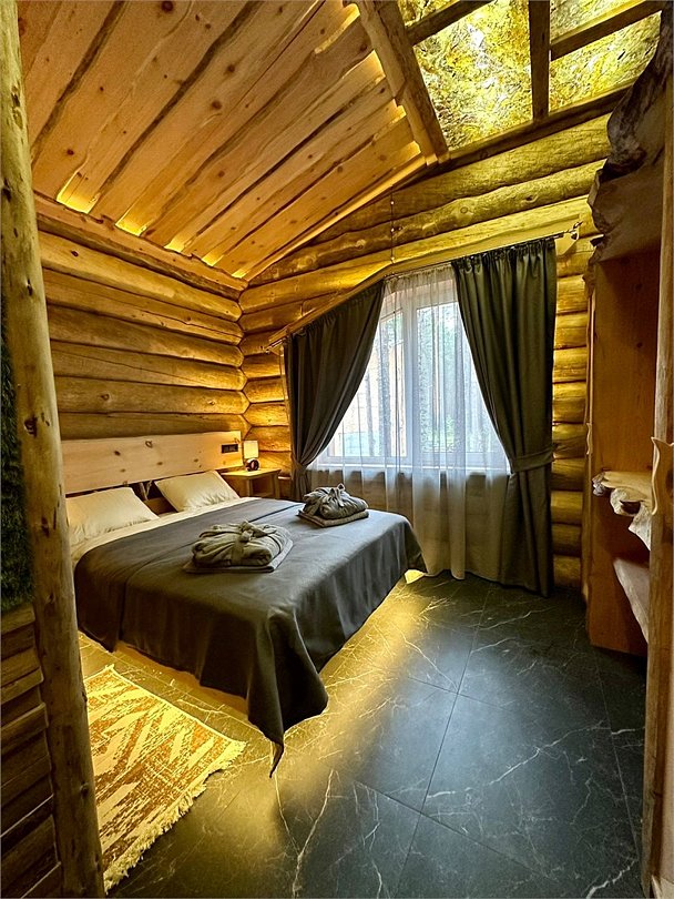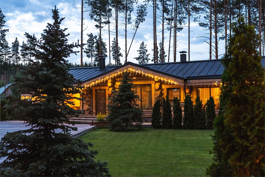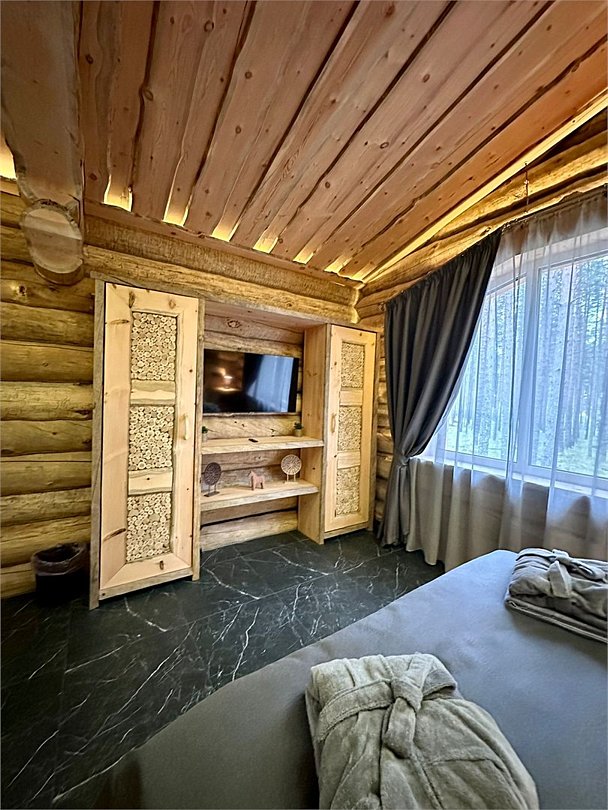 Просторный дом площадью 142 м2, построенная из карельской сосны кело. В доме одна спальная комната с большой двухместной кроватью, гостинная с угловым диваном, Дополнительно можно воспользоваться и попариться в русской бане, которая оснащена профессиональными печами и 4 купелями. На открытой террасе японская купель фурако Большая гостиная для теплых посиделок. Услуги парения и массажа.Услуги и удобства