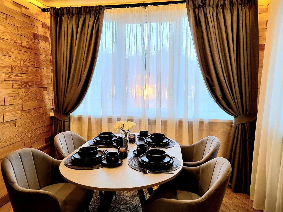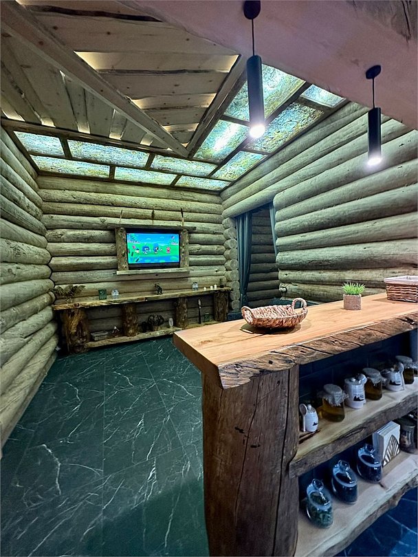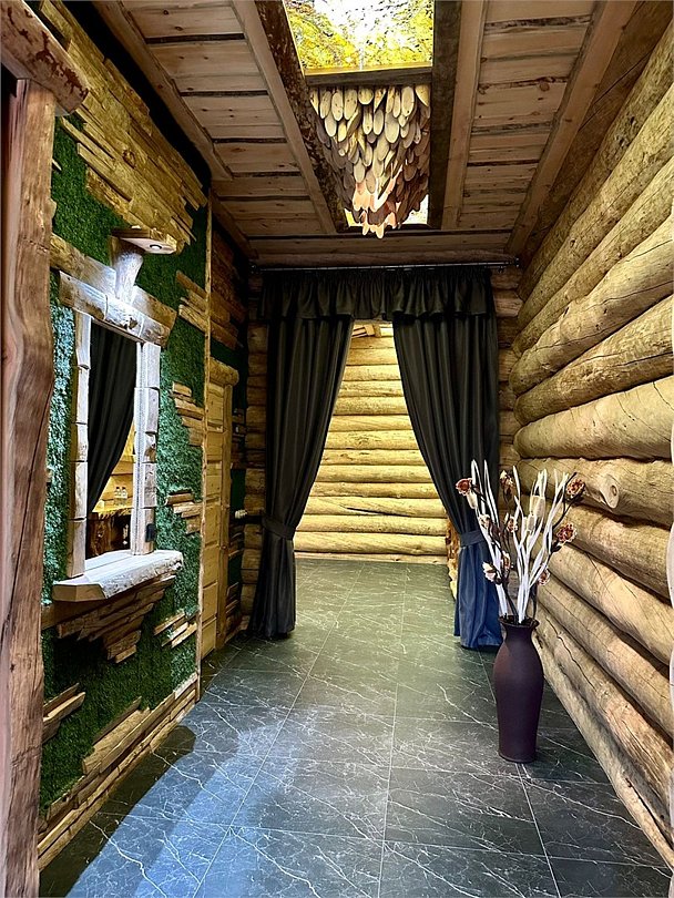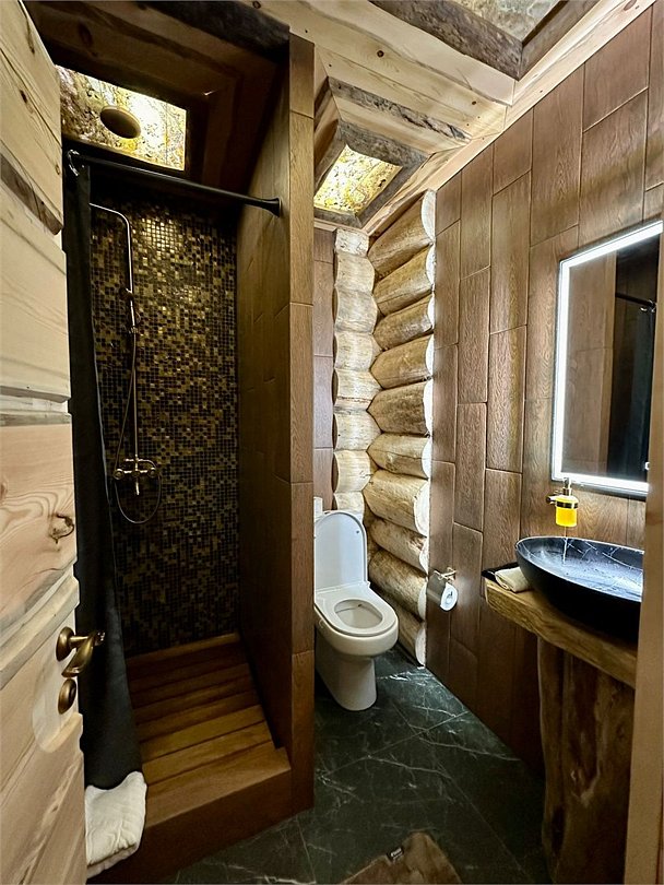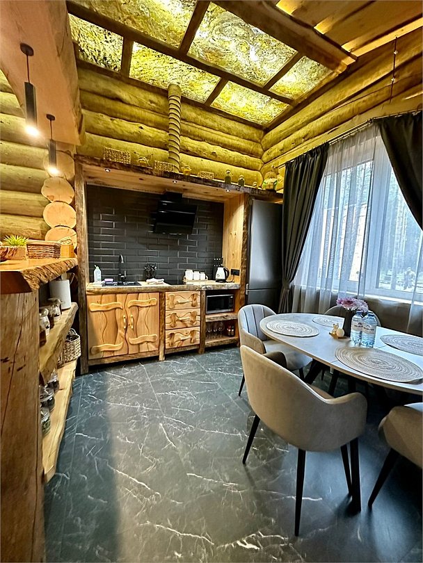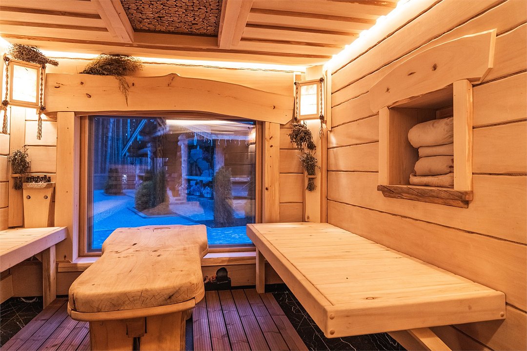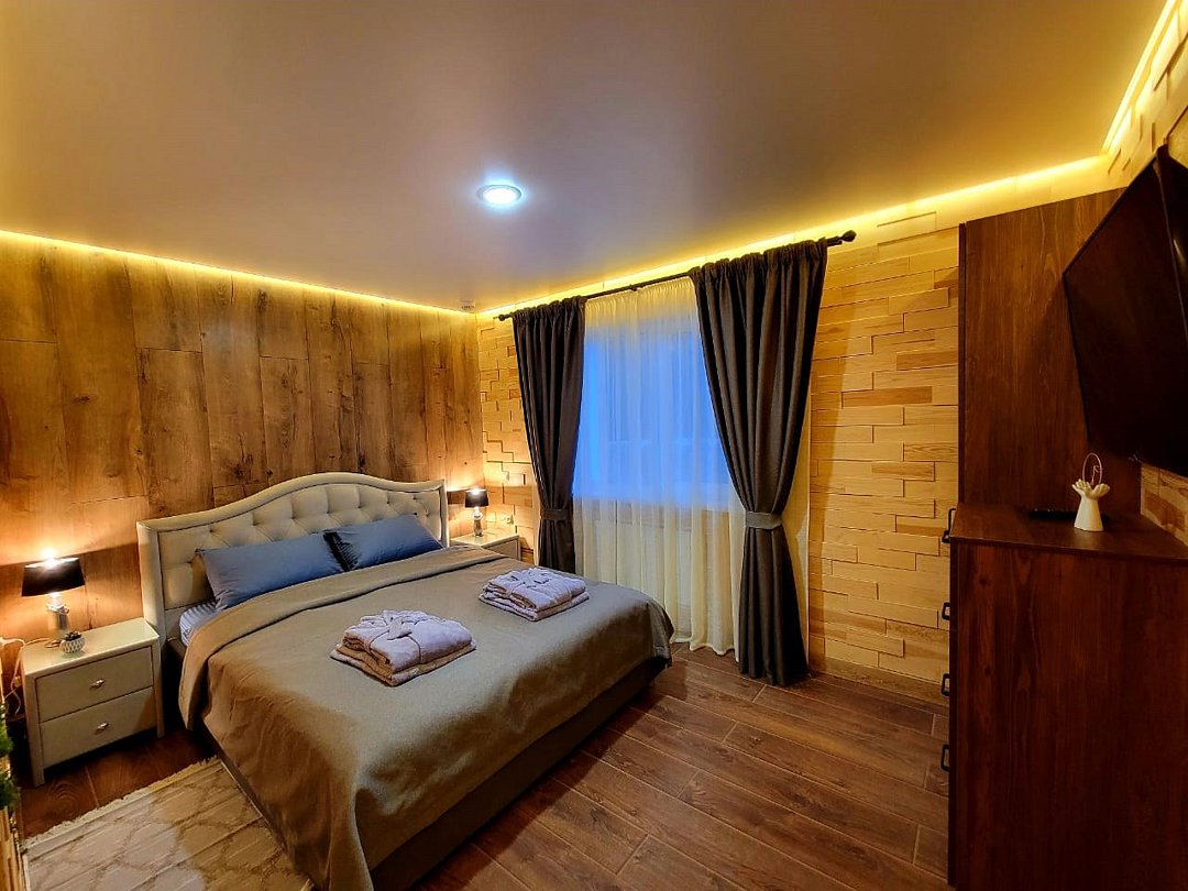 Просторный дом площадью 142 м2, построенная из карельской сосны кело. В доме одна спальная комната с большой двухместной кроватью, гостинная с угловым диваном, Дополнительно можно воспользоваться и попариться в русской бане, которая оснащена профессиональными печами и 4 купелями. На открытой террасе японская купель фурако Большая гостиная для теплых посиделок. Услуги парения и массажа.Услуги и удобства