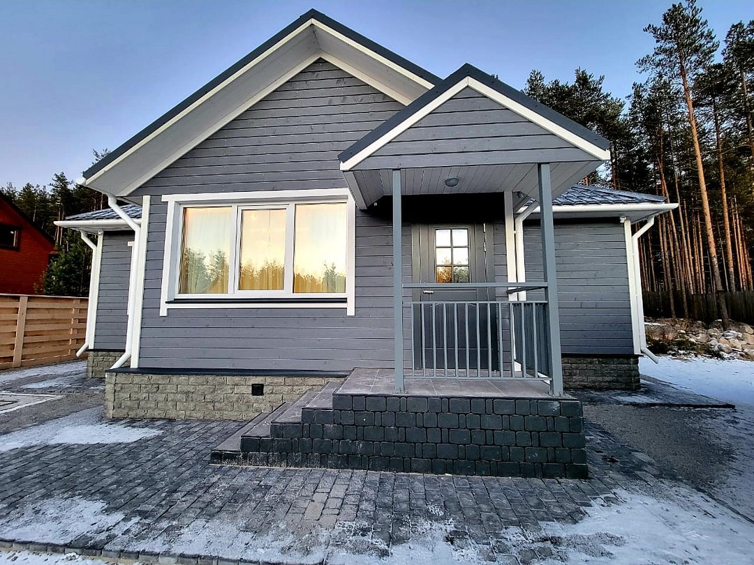 Дом рассчитан на 6 человек, три спальни с индивидуальными санузлами. В каждой спальне одна двуспальная кровать, в гостиной диван раскладной для двоих, кухня с современным оборудованием, индукционная плита, духовой шкаф, терраса с мебелью из ротанга, чайный набор, телевидение, Wi-Fi, фен, косметические принадлежности, бутилированная вода (приветственная, выдается один раз при заезде),В 5 минутах ходьбы от основного комплекса Karelia Club FamilyУслуги и удобства