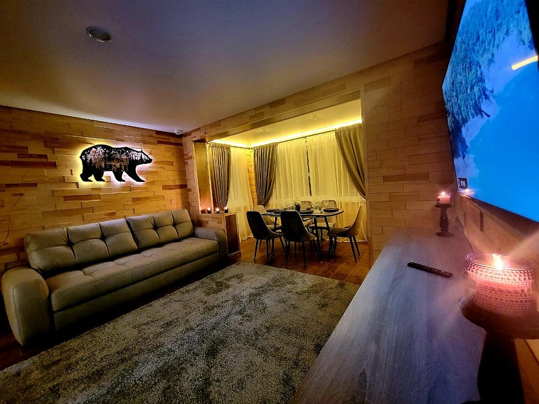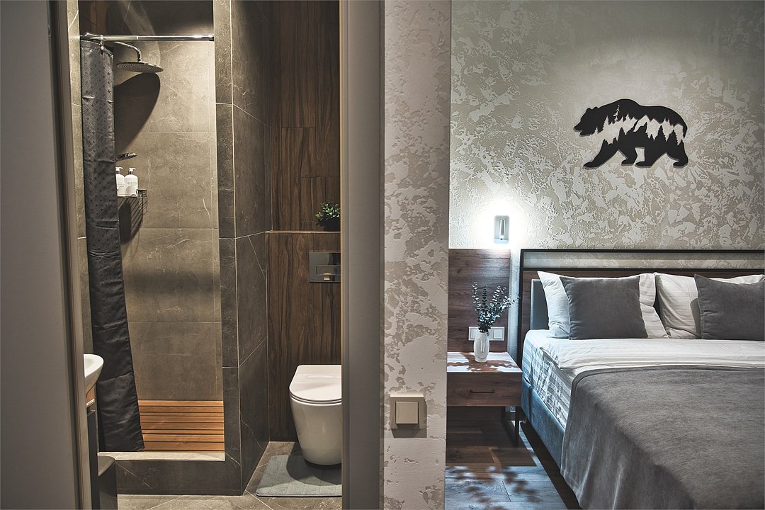 Wi-Fi, интернет, холодильник, система климат-контроля, фен, система безопасности, плита для приготовления пищи, микроволновая печь, утюг, ванная комната, теплый пол, халаты, тапочки, косметические средства, диван, гардеробная, обеденный стол, барная стойка, зеркало, эксклюзивная мебель, кухня, чайный набор, набор посуды, чайник, обеденная зона, гостиная зона, отопление, отдельный вход в номер, душ, высокие потолки, две кровати «Queen size», кухонная посуда, кухонная утварь, столовые приборы, телевизор со Smart TV, теплые полы, вид на лес, онлайн-регистрация до заезда, угловой диван-кровать, фумигатор, уборка номера, набор для приготовления чая и кофе, услуги прачечной (платно)В аппартаментах