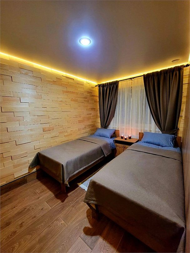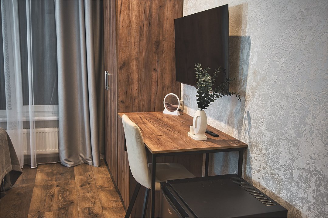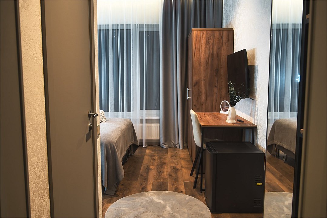 Wi-Fi, фен, электронные замки, теплый пол, тапочки, косметические средства, две односпальные или большая двуспальная кровать, шкаф для одежды, вешалки, зеркало, обслуживание номеров, чайник, душ, вид во двор, ламинат, стул, стол, туалет, мини-холодильник, москитная сетка, телевизор со Smart TV, номер для некурящих, вид на лес, чайная станция, вешалки-плечики, бутилированная вода, затемняющая штораВ номере