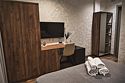 Улучшенный двухместный номер площадью 16 м2 с эксклюзивным интерьером, оснащен двуспальной кроватью.Услуги и удобства