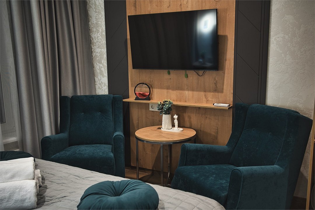 Wi-Fi, кондиционер, фен, электронные замки, теплый пол, тапочки, косметические средства, две односпальные или большая двуспальная кровать, шкаф для одежды, вешалки, зеркало, обслуживание номеров, чайник, душ, вид во двор, ламинат, стул, стол, туалет, мини-холодильник, москитная сетка, телевизор со Smart TV, номер для некурящих, вид на лес, чайная станция, вешалки-плечики, бутилированная вода, затемняющая штораВ номере