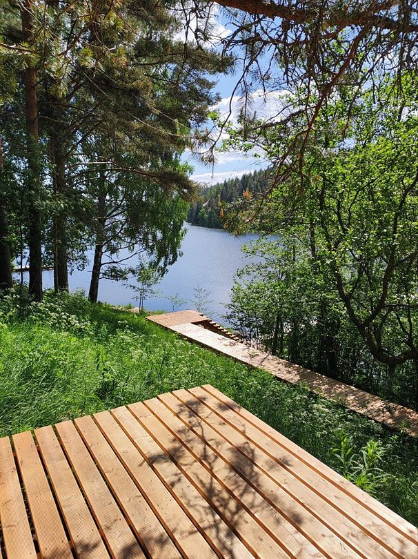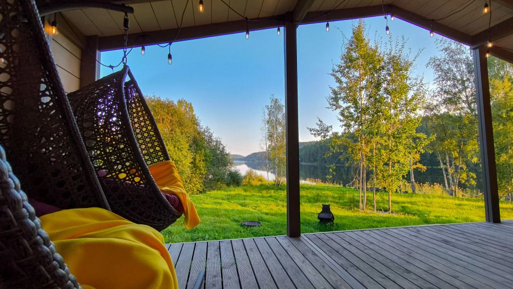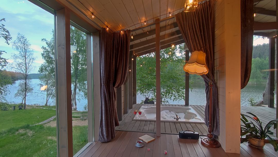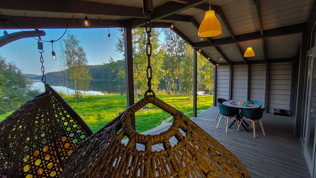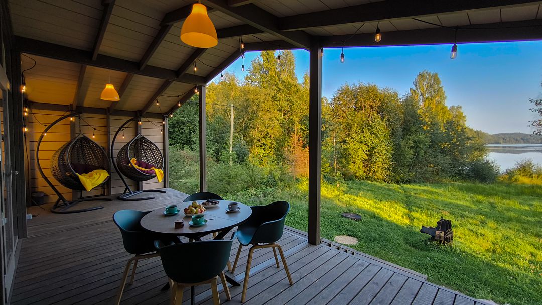 С террасы коттеджа открывается 2 километровая панорама на гладь озера. Терраса 25 кв.м.