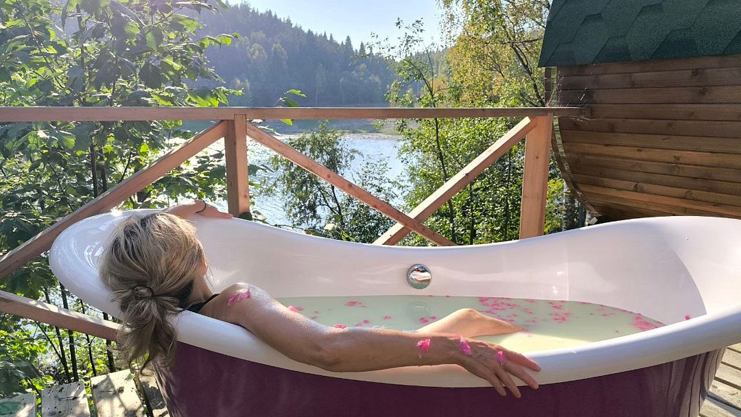 Вы будете просыпаться под щебет птиц, гулять меж живописных берёзок и вдоль искристого озера, купаться, кататься на лодке, париться в баньке и отдыхать в сывороточной ванне прямо под открытым небом.