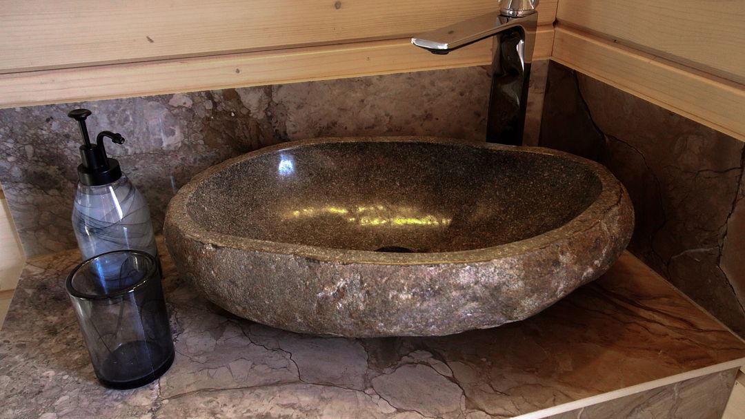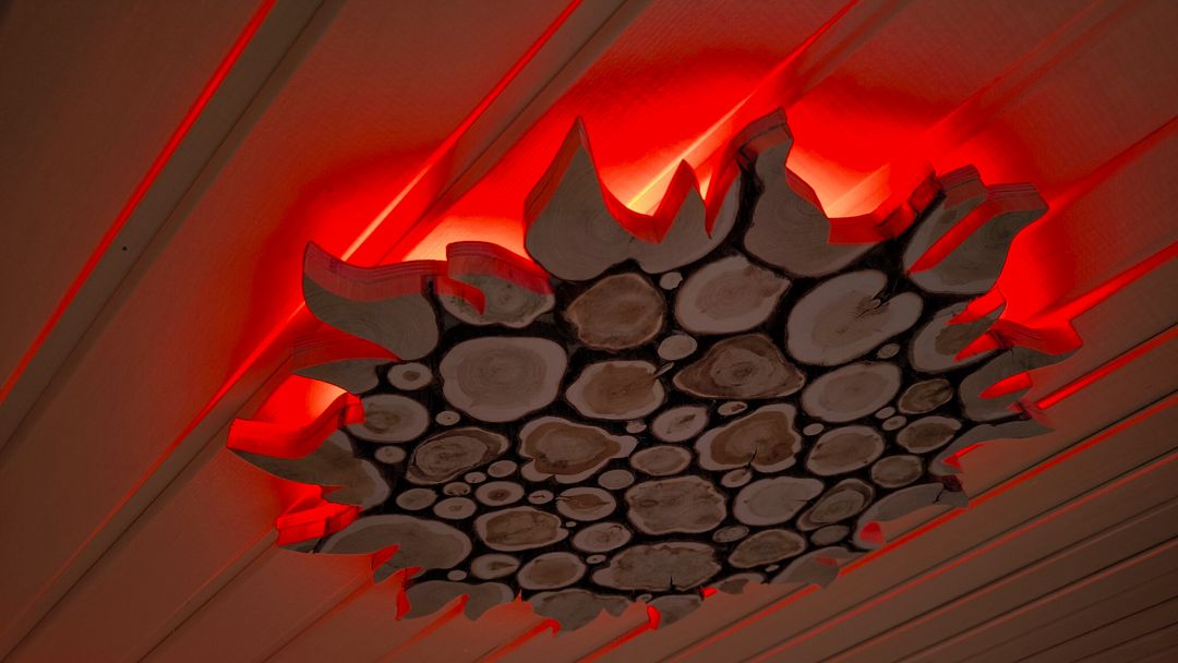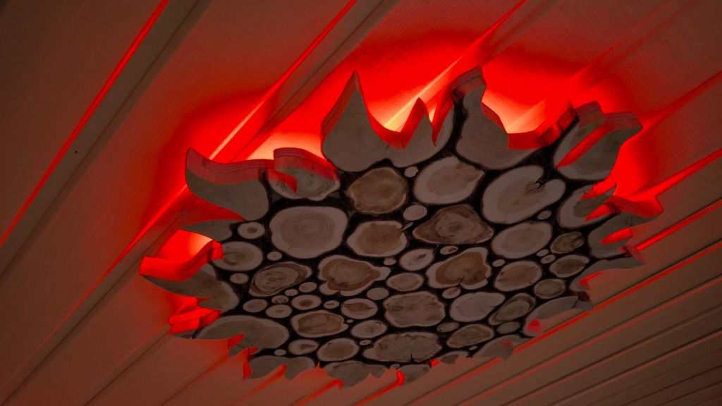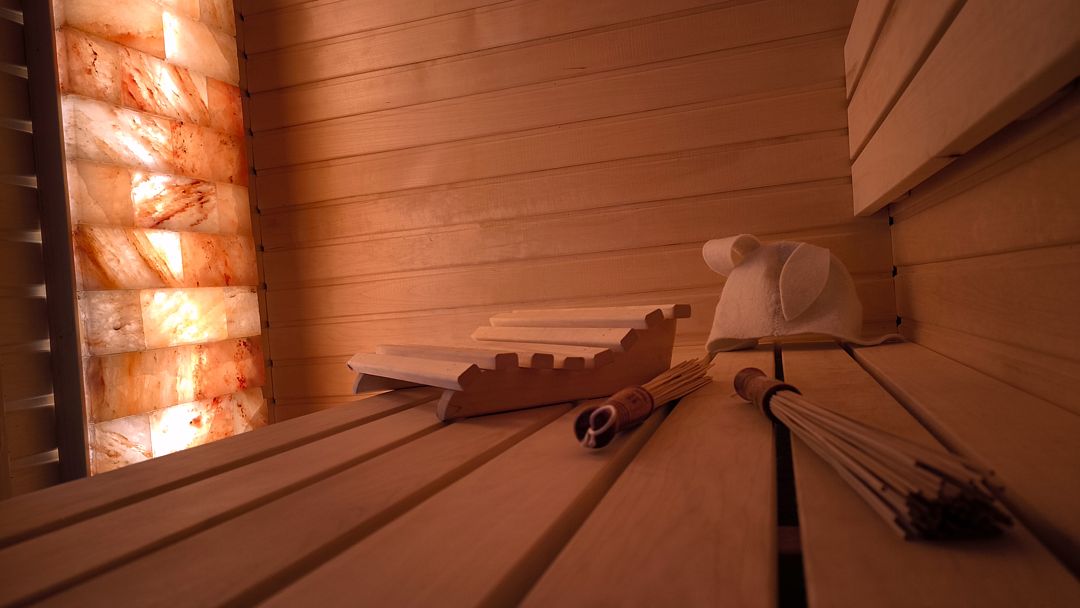 - в сауне выполнено панно из гималайской соли.