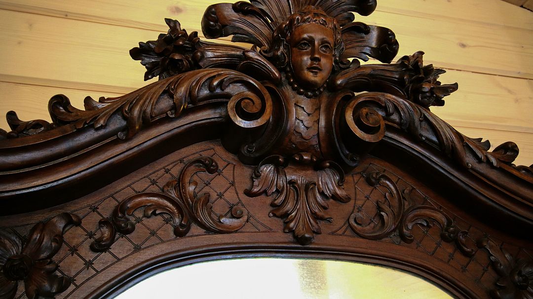 - антикварная, ореховая с шикарной резьбой в стиле рококо, двуспальная кровать, шириной 140 см.