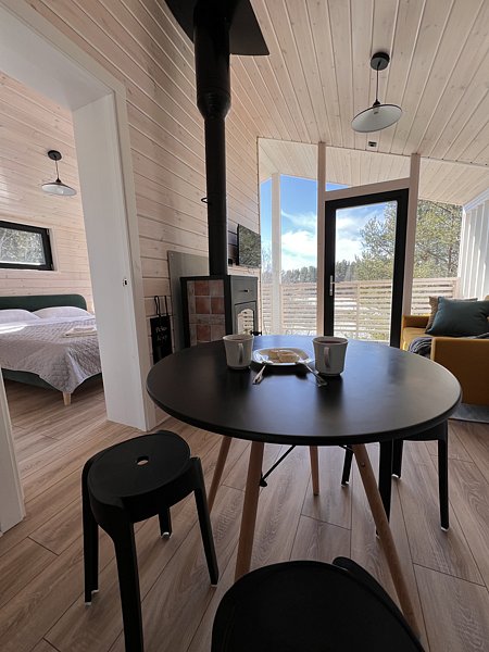 Коттедж стоит в уединенном месте на берегу. Панорамные окна в гостиной и спальне открывают очень красивый вид на воду. Скандинавский уютный минимализм дома создаст приятную атмосферу для отдыха.