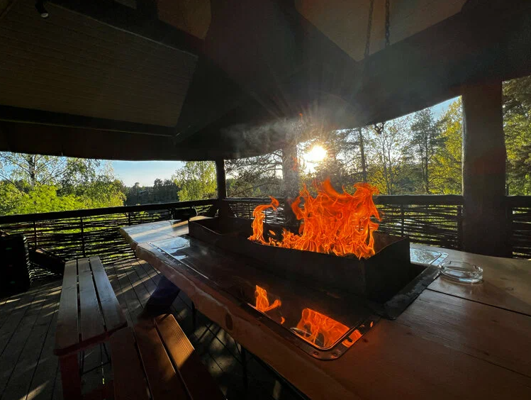 Гостям коттеджа №1 предоставляется для отдыха уникальная крытая беседка с интегрированным мангалом, где с комфортом может находиться до 16 человек одновременно. Входит в стоимость аренды дома.