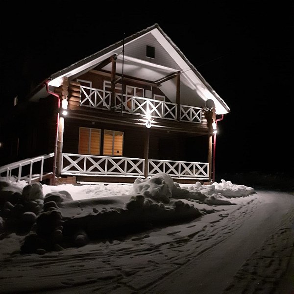 - бревенчатый дом с отоплением, в доме 4 спальни (2 чел. — отдельные кровати с возможностью совмещения, 2 чел. — большая двухместная кровать, 2 чел. — отдельные кровати с возможностью совмещения, 3 чел. — отдельные кровати с возможностью совмещения);