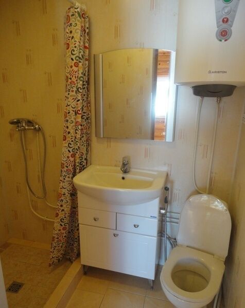 1й этаж:кухня совмещённая с гостиной (кухонный гарнитур,электрическая плита,духовка,стиральная машина,холодильник,эл.чайник микроволновка,стол,6 стульев, детский стульчик, посуда ИКЕА на 12 персон,русская печь, угловой диван,прихожая,туалет, био-душ, душ,фен, 1 спальня(2-х спальная кровать,детская кроватка, бельевой шкаф),телевизорЖК+Триколор, открытая веранда