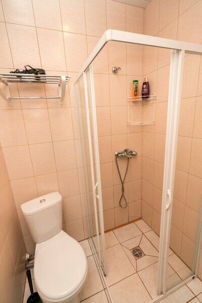 Что касается минусов. Скажем так, есть свои особенности, связанные именно с подобным зданием. Хорошо слышно, что происходит в других комнатах, отсутствие лифта (здание двухэтажное). Вода нагревается с помощью титана: открыть кран и тут же получить горячую воду не получится, придется немного подождать. Плюс температура воды во время приема душа может меняться. В номере плохо высыхает белье, так что лучше брать с собой запас. На 2 этаже было маленькое окошко - днем не особо светло. -