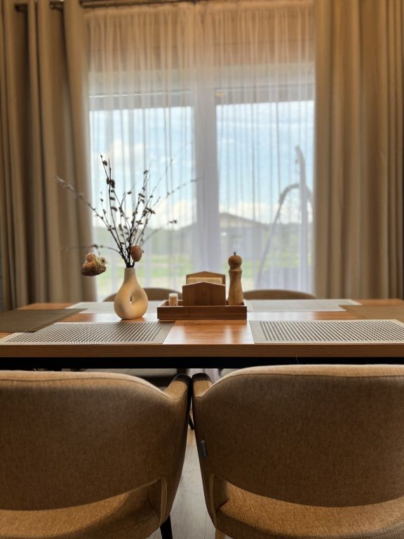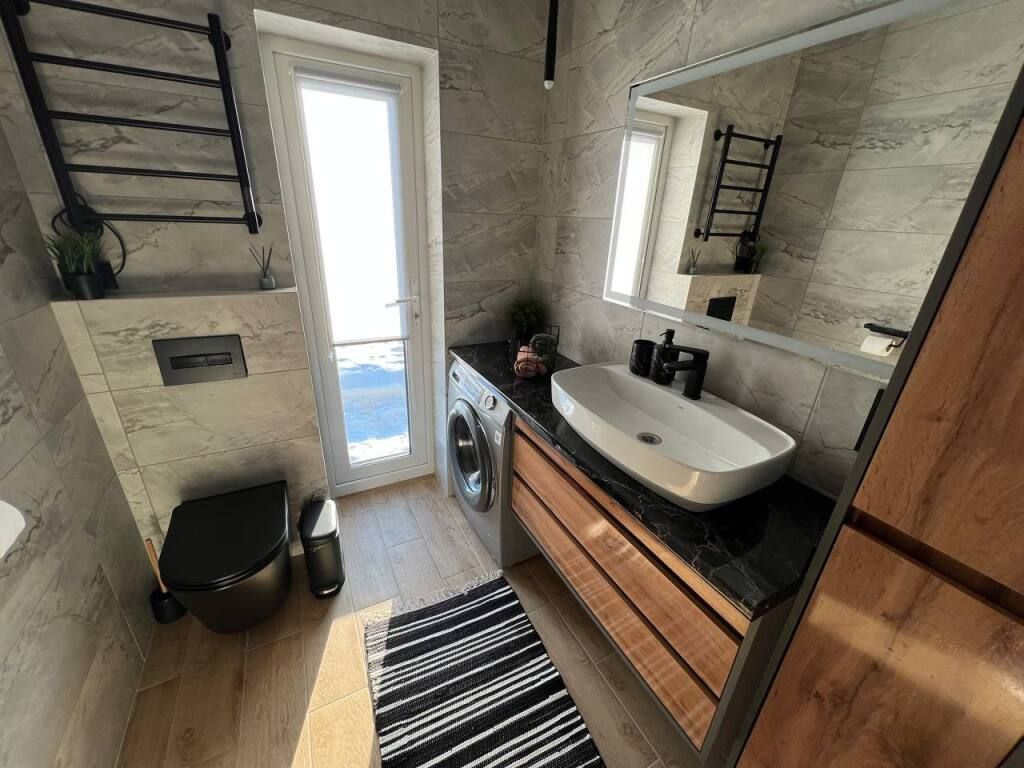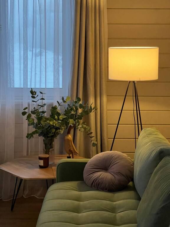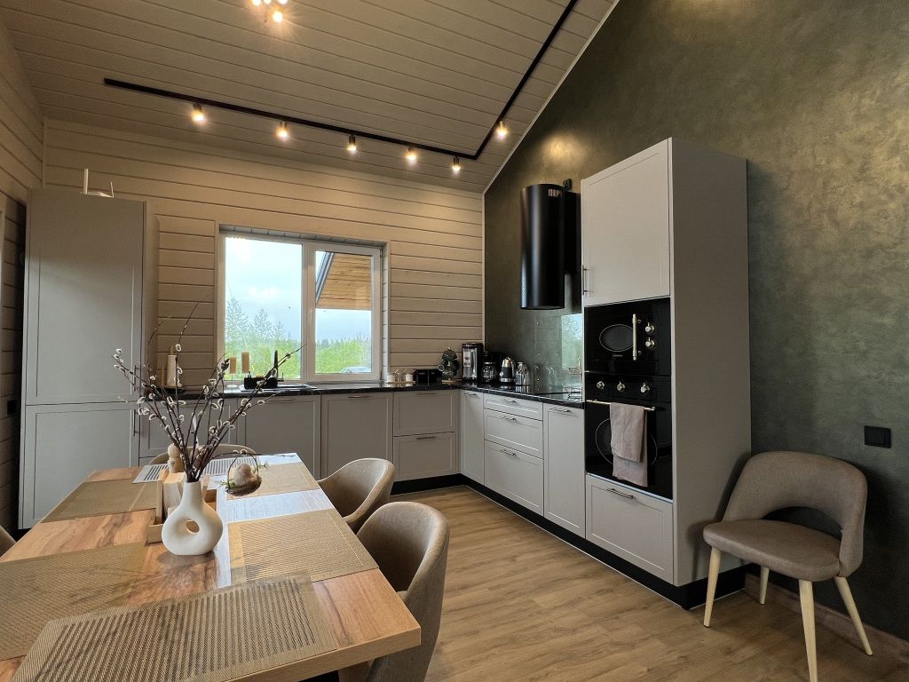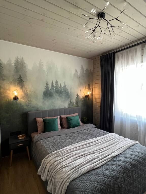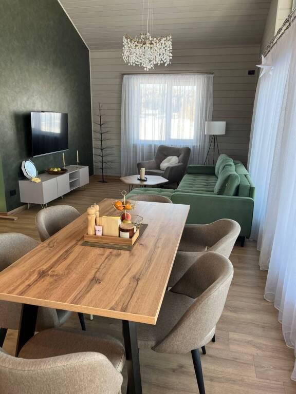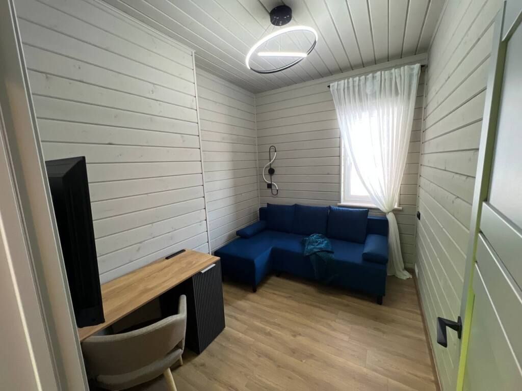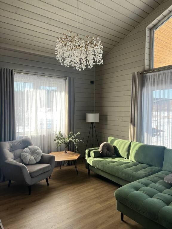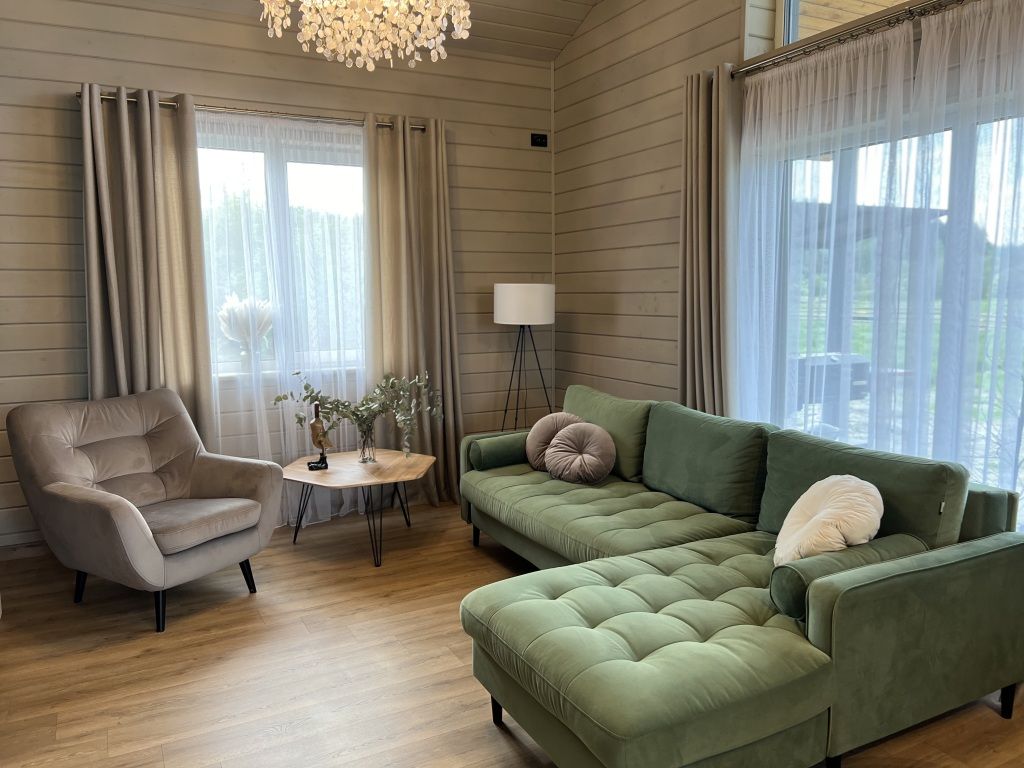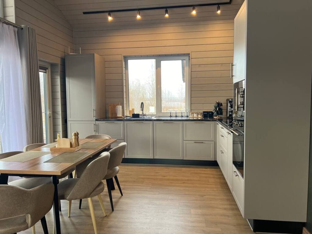 Современный дом с тремя спальнями, кухней со всей необходимой бытовой техникой и посудой. Есть сауна с электропечью, просторная терраса. Два санузла, теплый пол по всему периметру.