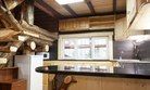 Небольшая гостиная совмещенная с кухней, позволит чувствовать уют и тепло деревянного дома.