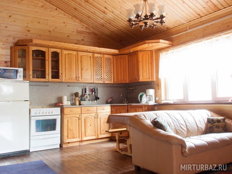 Большая гостиная вместит любую компанию, оборудованная кухня. В коттедже есть все для Вашего комфортного отдыха.
