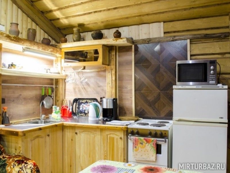 Коттедж «Теремок», выполненный в стиле старой русской избы, с легкостью может вместить 4-5 человек.