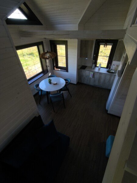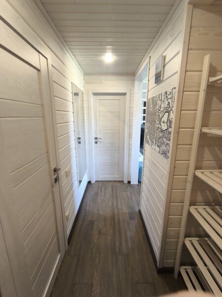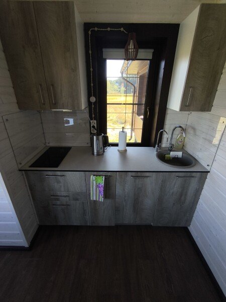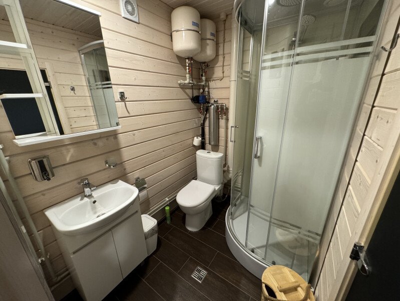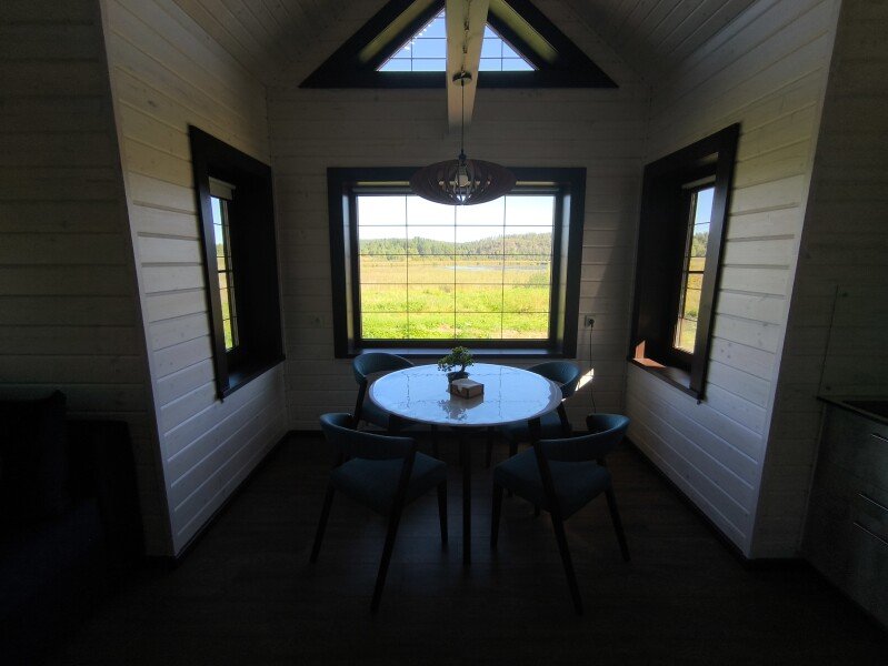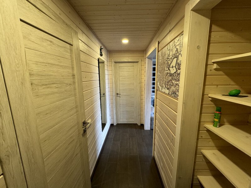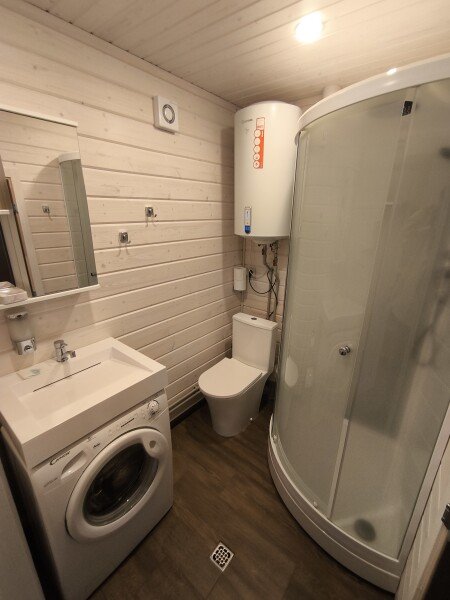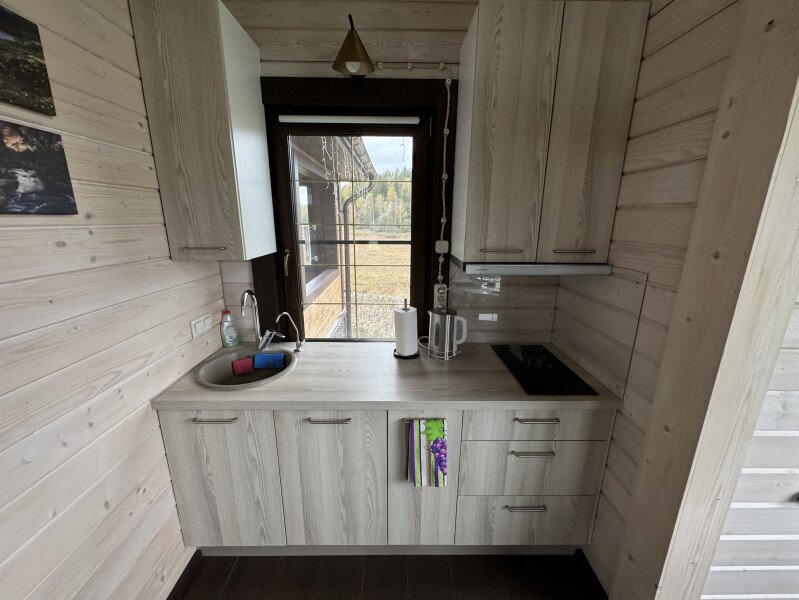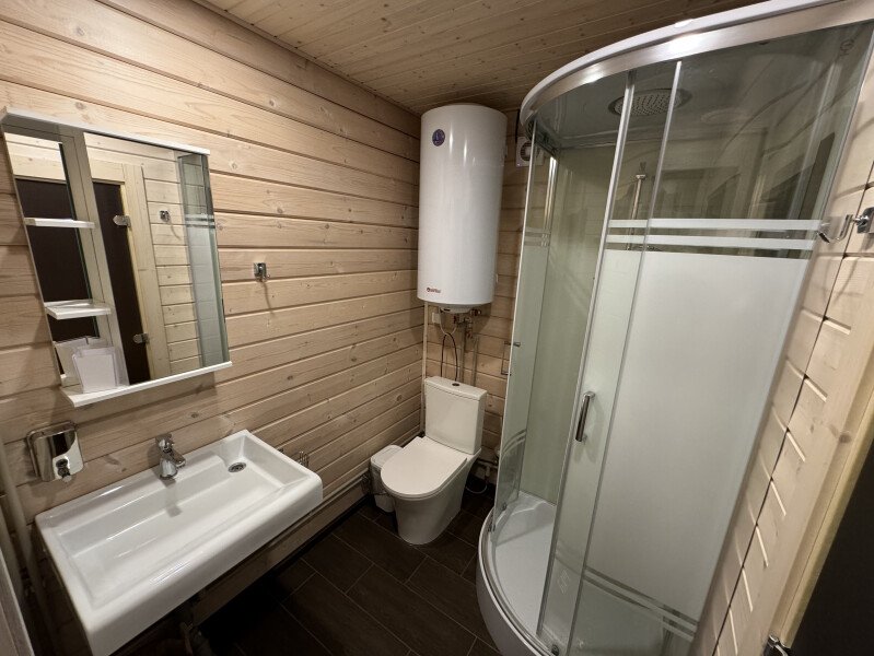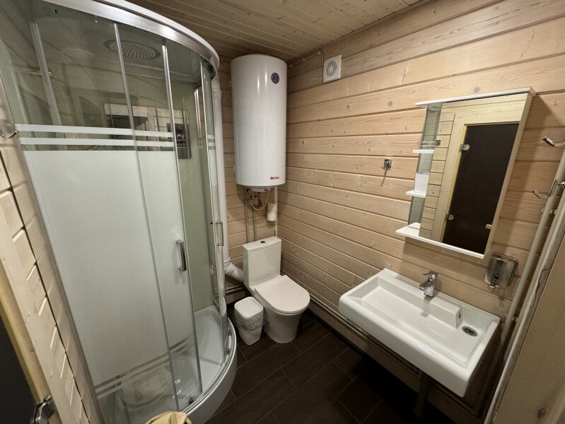Что вас ждет внутри: удобная гостиная с диваном и Smart TV (доступ к онлайн-кинотеатрам), высокоскоростной Wi-Fi (до пятидесяти Мбит/с) — можно работать удалённо, полноценная кухня: индукционная плита, микроволновка, посудомоечная машина, холодильник, вытяжка, теплые полы во всех помещениях, электрическая сауна и душевая кабина.
