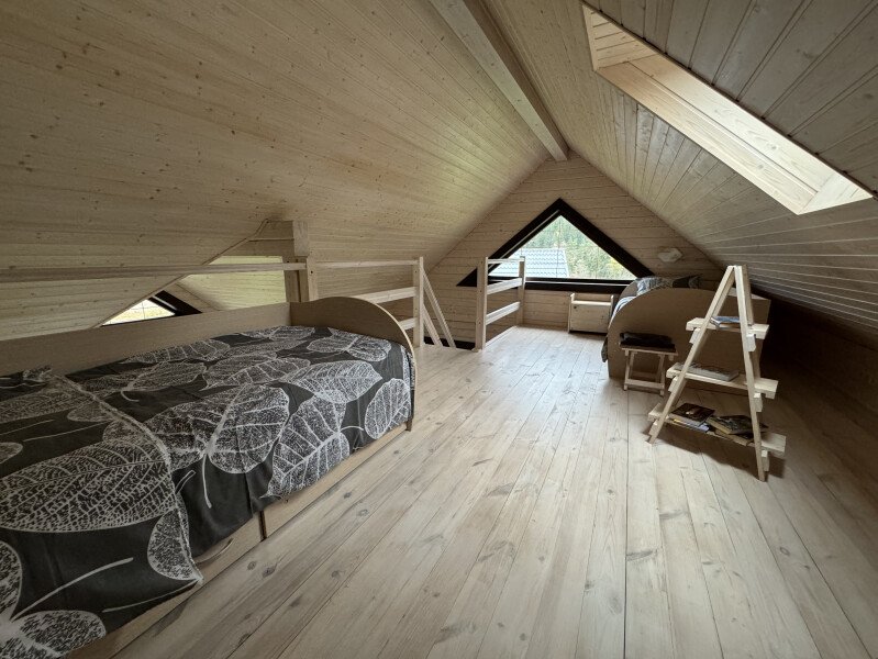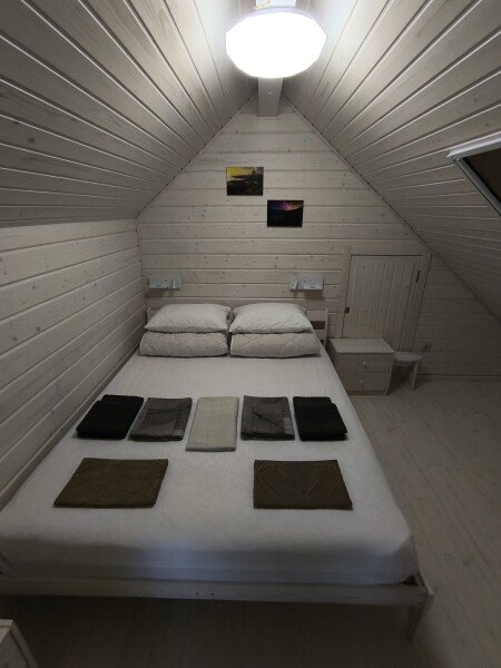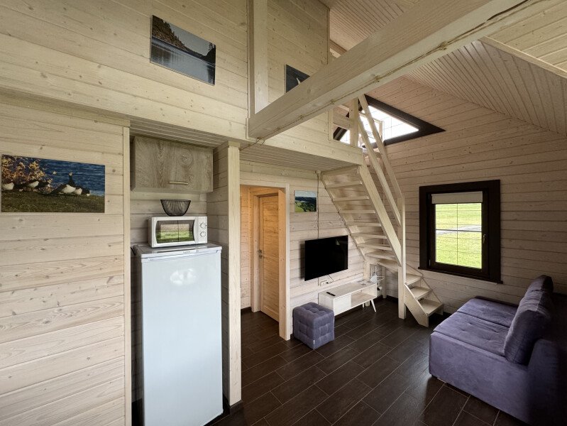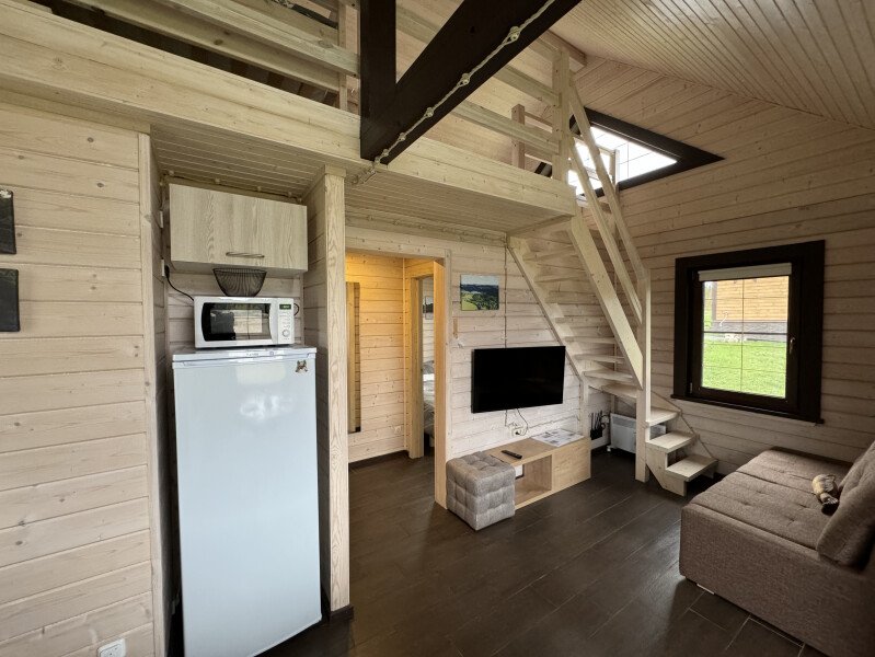 Домик №3 (1 спальня с двуспальной кроватью + 2 односпальные кровати на лофте)