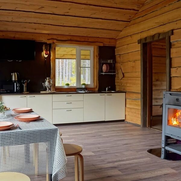 В каждом доме находятся 6 основных спальных мест + два дополнительных. В интерьере преобладают натуральные материалы