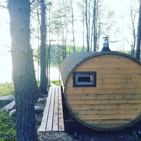 С виду не большая, но очень вместительная внутри. Ее не надо топить пол дня, час и готова! А ещё вы можете, напарившись, разбежаться и прыгнуть прямо в озеро.