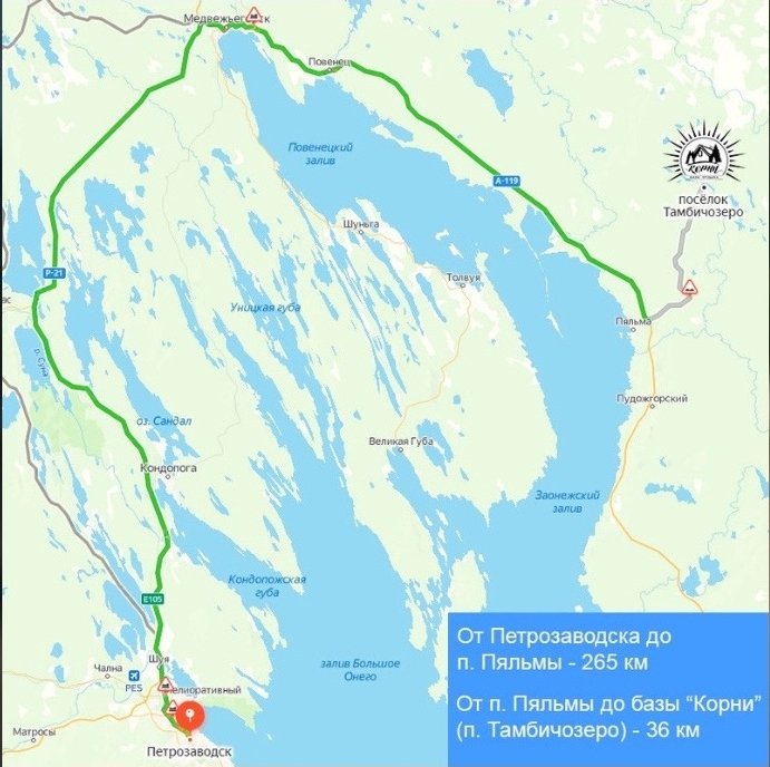 Возможен трансфер от п. Пяльма (Нива тревел). Машина останется на парковке с видеонаблюдением.