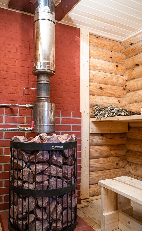 Инфраструктура: простыни, березовые веникиНовая шикарная баня из цилиндрического бревна на дровах рассчитана на 4 человека.