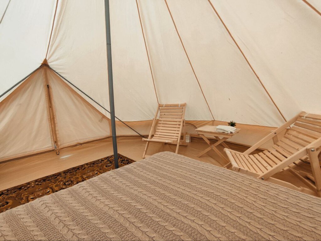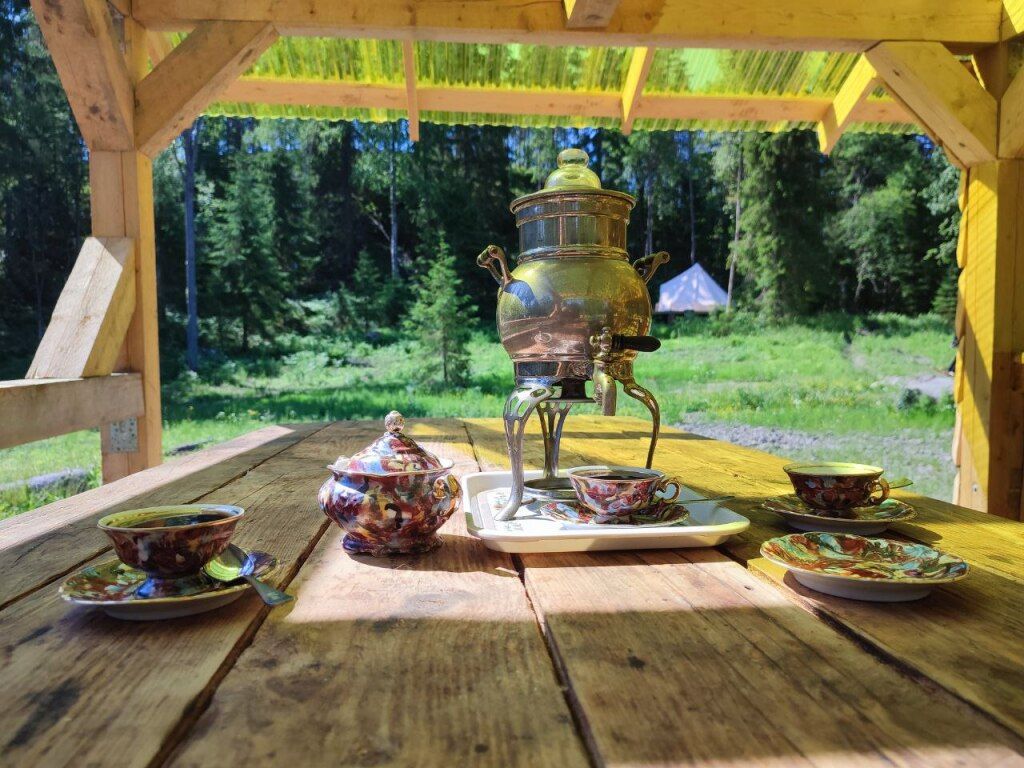 У каждого шатра (Кроме лесной поляны и всех мини) имеется свой мангал и решетка. Уголь и розжиг можно приобрести у нас за отдельную плату.