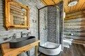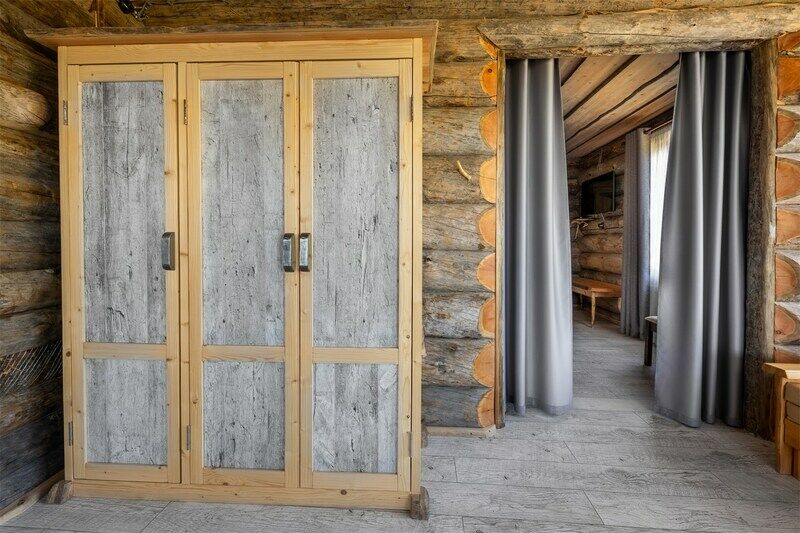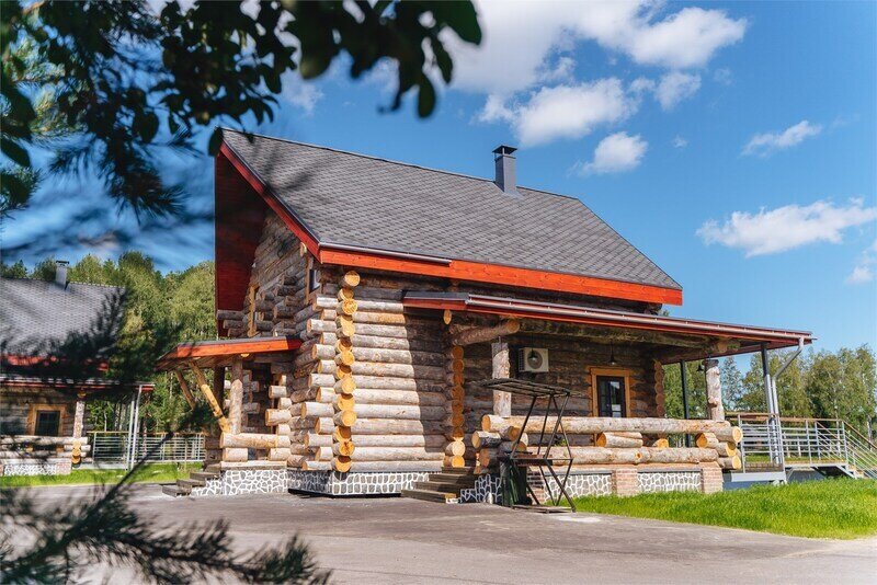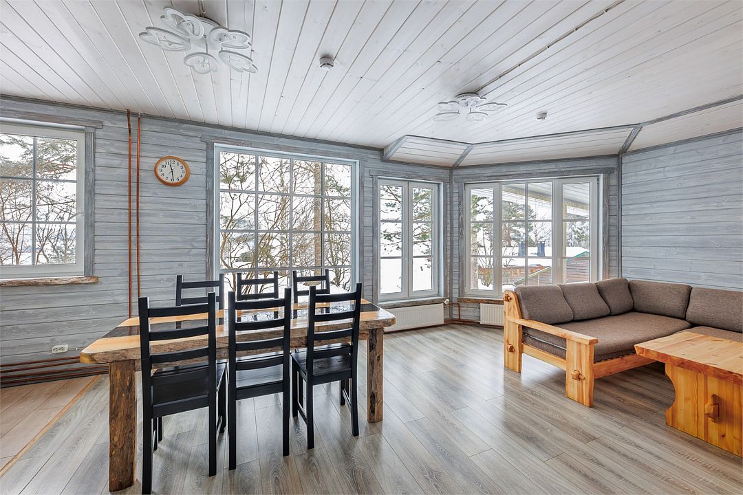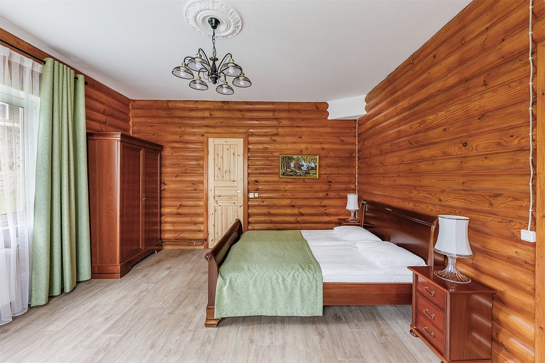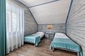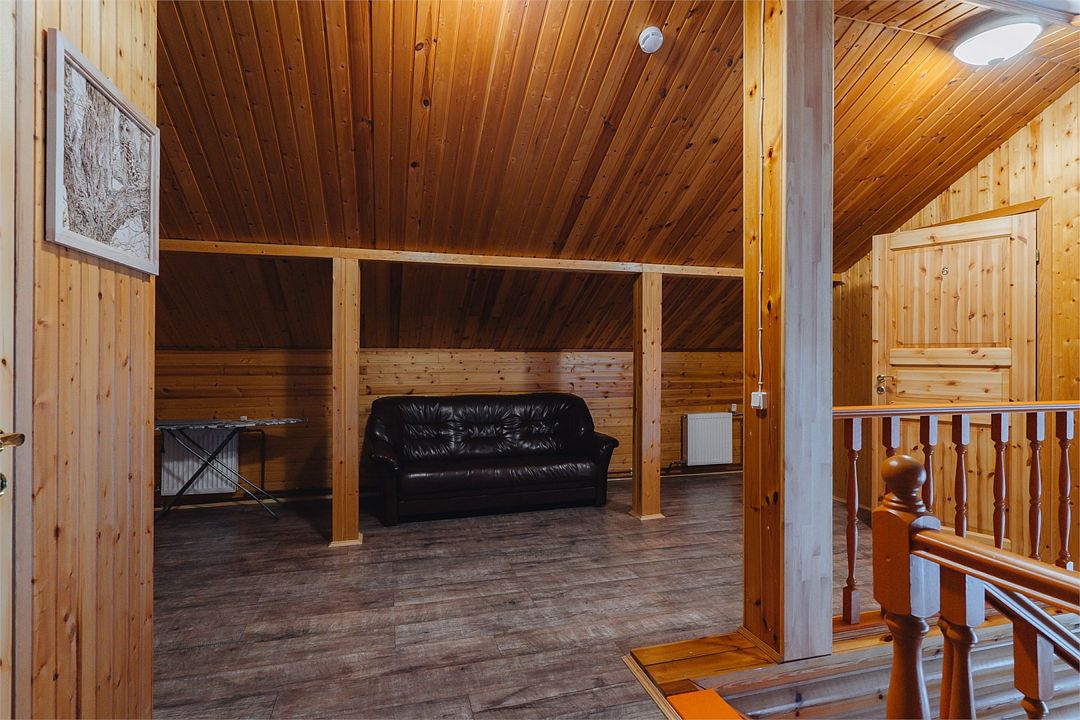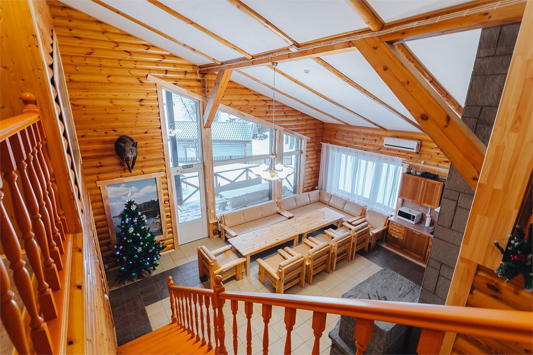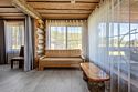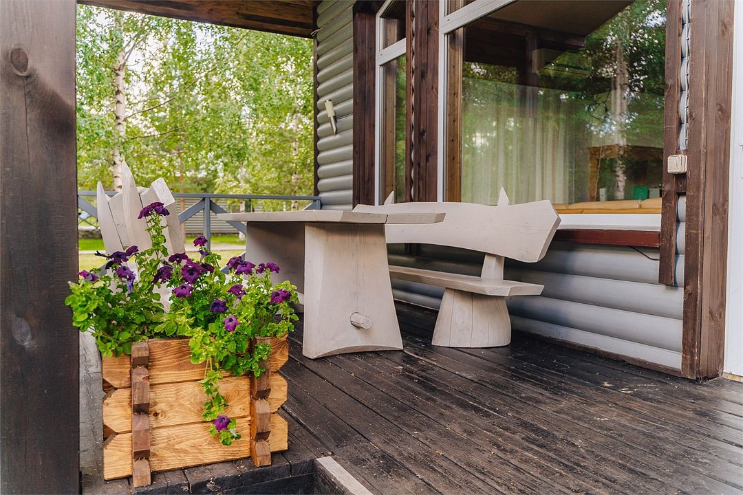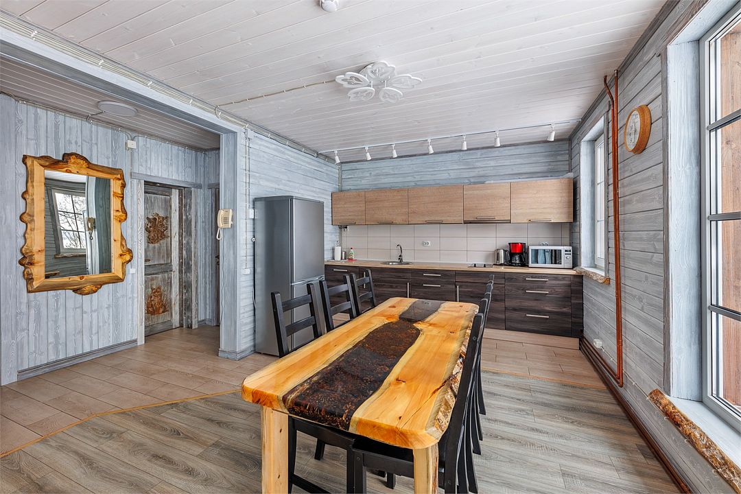 6 местный хаусбот на мысу. Одноэтажный деревянный коттедж с тремя спальнями (в каждой спальне есть туалет и душ), гостиная с камином и оборудованной кухней, две сауны: инфракрасная и финская, терраса на крыше. Рядом с коттеджем имеется мангальная зона.