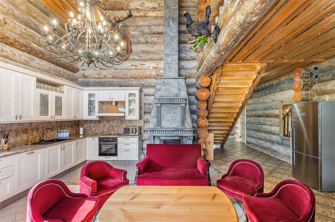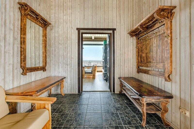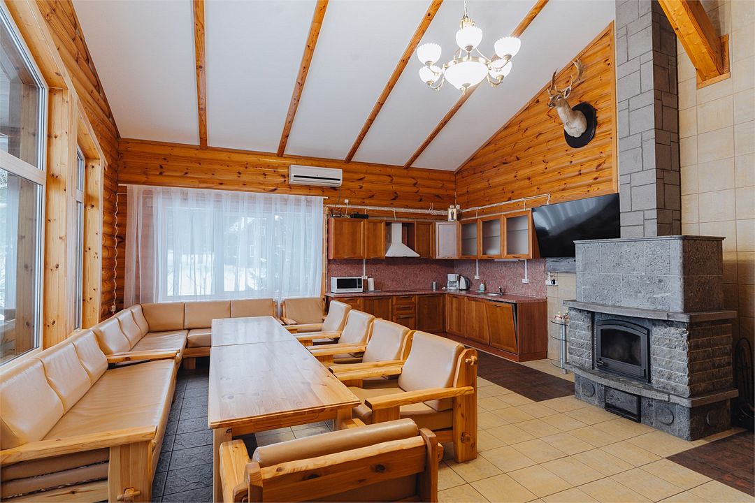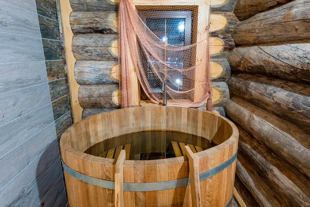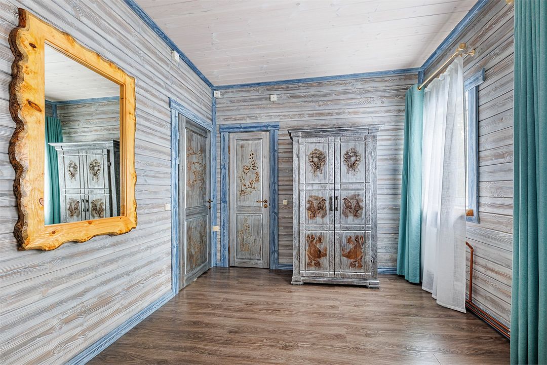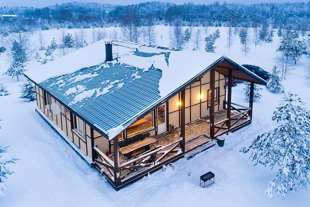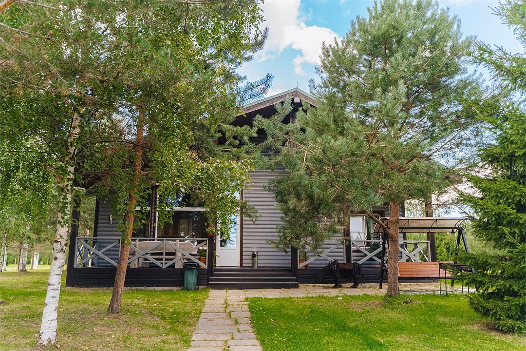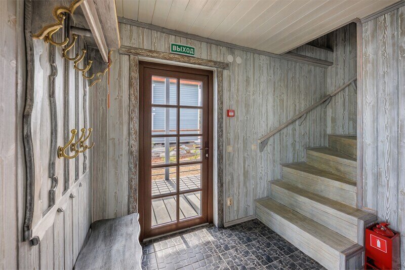 6 местный хаусбот на мысу. Одноэтажный деревянный коттедж с тремя спальнями (в каждой спальне есть туалет и душ), гостиная с камином и оборудованной кухней, две сауны: инфракрасная и финская, терраса на крыше. Рядом с коттеджем имеется мангальная зона.