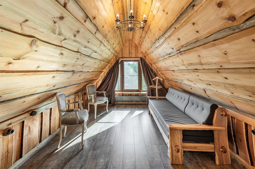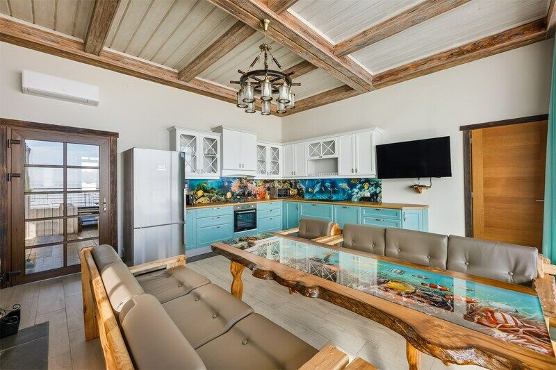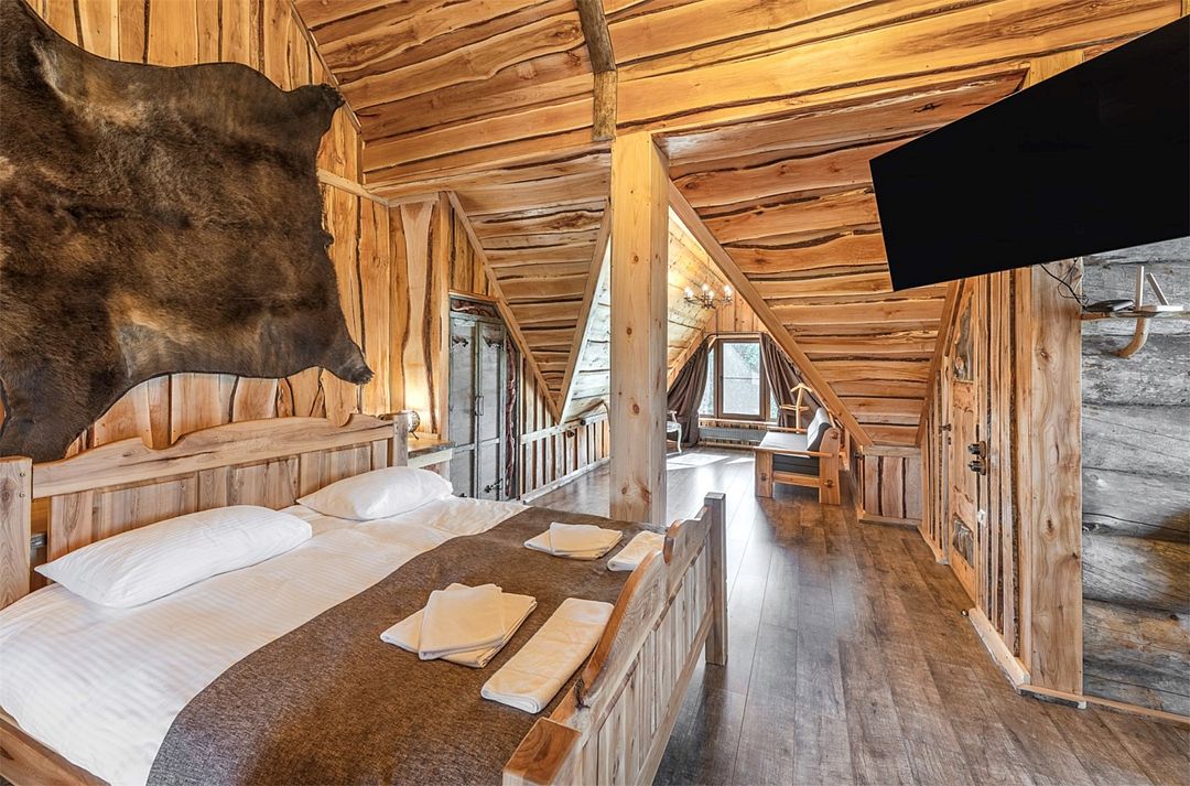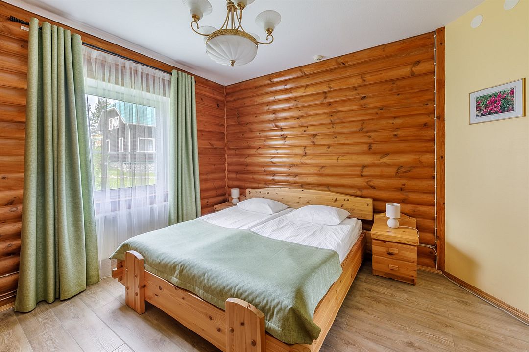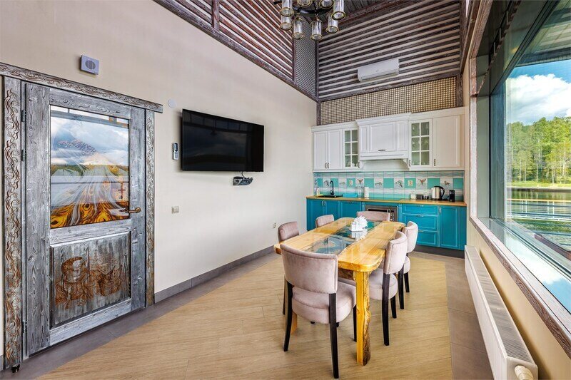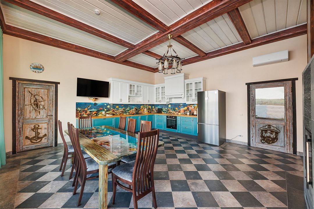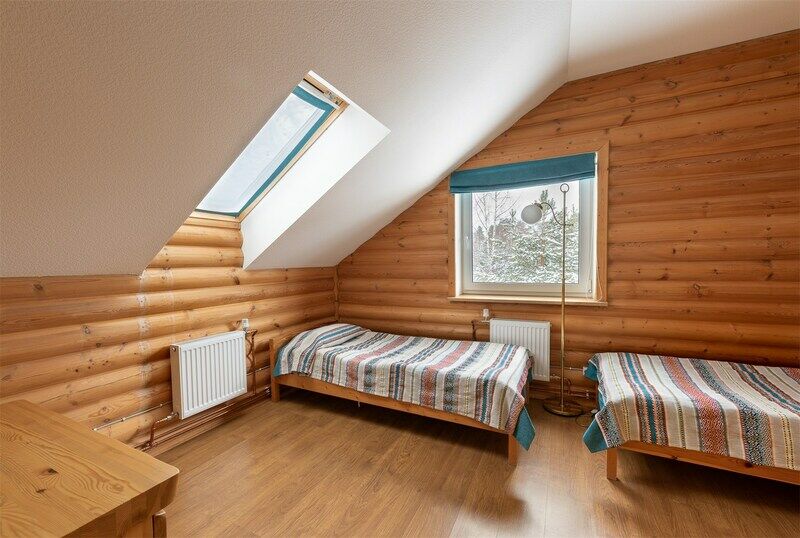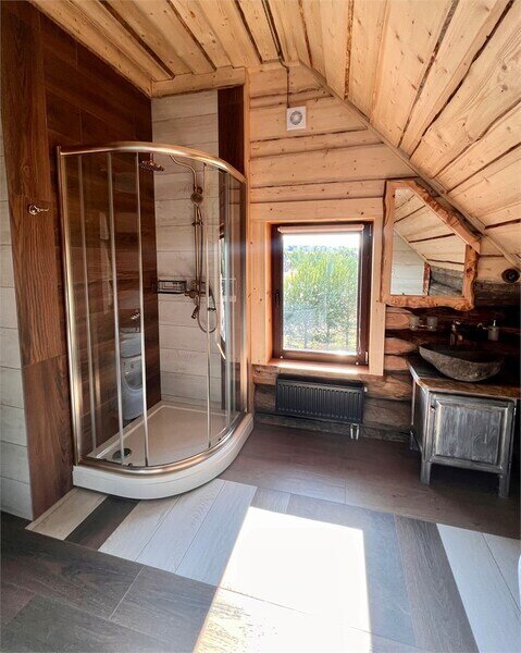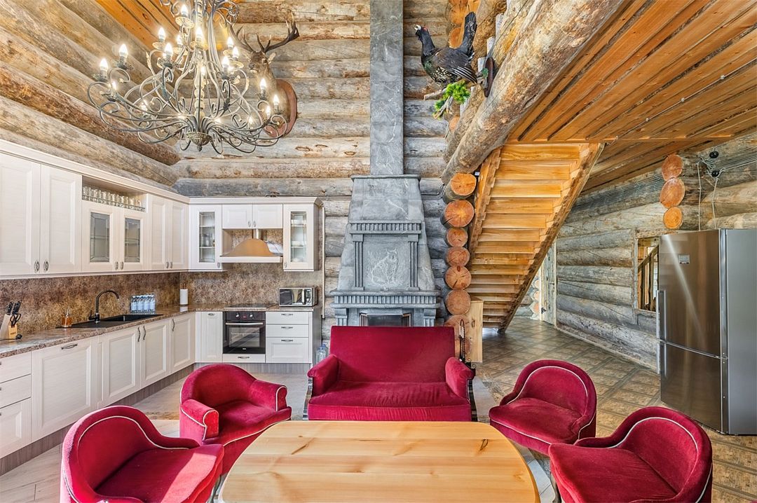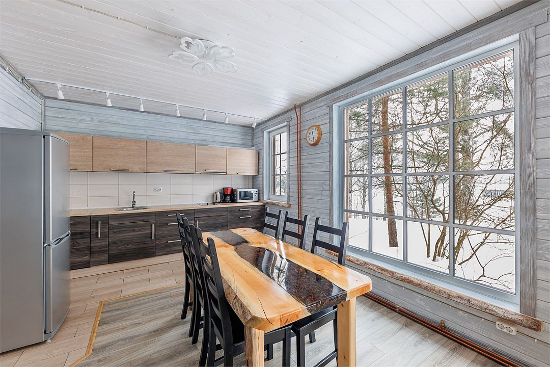 6 местный хаусбот на мысу. Одноэтажный деревянный коттедж с тремя спальнями (в каждой спальне есть туалет и душ), гостиная с камином и оборудованной кухней, две сауны: инфракрасная и финская, терраса на крыше. Рядом с коттеджем имеется мангальная зона.
