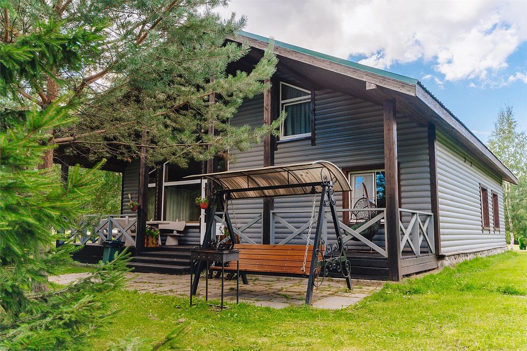 Двухэтажный коттедж на берегу залива с тремя спальнями (в каждой спальне есть туалет и душ), гостиная с камином и оборудованной кухней. Терраса, личный пирс, мангал.