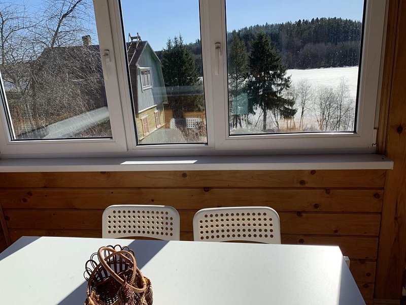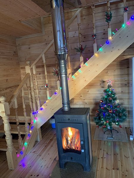 В коттедже есть санузел, горячая и холодная вода из собственной скважины, душевая кабина, стильная, оборудованная всем необходимым большая кухня, посуда для готовки и сервировки, стиральная и посудомоечная машина, Wi-fi, усилитель сотовой связи и другое. В доме свободная европланировка: на первом этаже кухня совмещена с гостиной и спальней, стоит 2 больших двуспальных дивана; на втором этаже спальня с большой двуспальной кроватью, детская кроватка для детей до 3 лет и складная односпальная кровать.