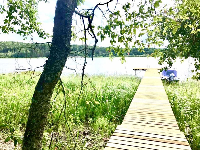 На территории коттеджа есть терраса с мангалом, костровой чашей и мебелью с видом на воду. Выход к воде прямо с участка, есть пирс со ступеньками для спуска в воду, место для загорания и отдыха с шезлонгами у воды. Есть зона барбекю с мангалом и беседкой у воды, уголь для мангала гости привозят сами.