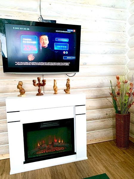 В доме имеются все удобства: новая современная бытовая техника, большой ассортимент посуды для сервировки стола и приготовления пищи. Работает мобильная связь и быстрый Wi-fi на всей территории. Для отопления есть камин, тёплый пол и электрорадиаторы в каждой комнате. В коттедже 4 комнаты. На первом этаже: 1 комната — возможна установка складной комфортабельной кровати, 2 комната — гостиная совмещена с кухней, есть большой двуспальный угловой диван-кровать. На втором этаже есть две изолированные спальни: 1 спальня с двумя односпальными кроватями, их можно составить вместе, и получится двуспальная; и 2 спальня с большой двуспальной кроватью.