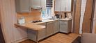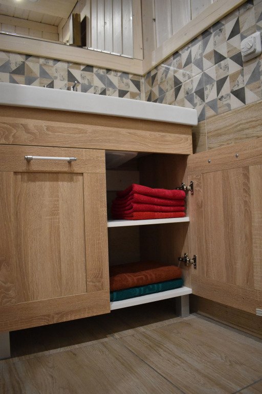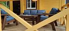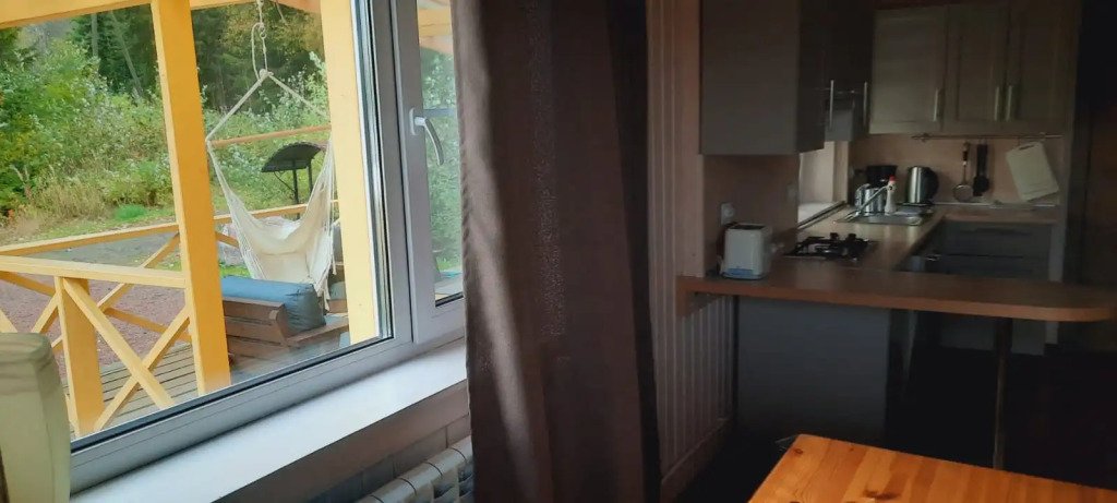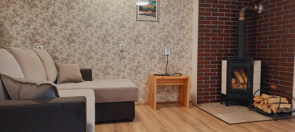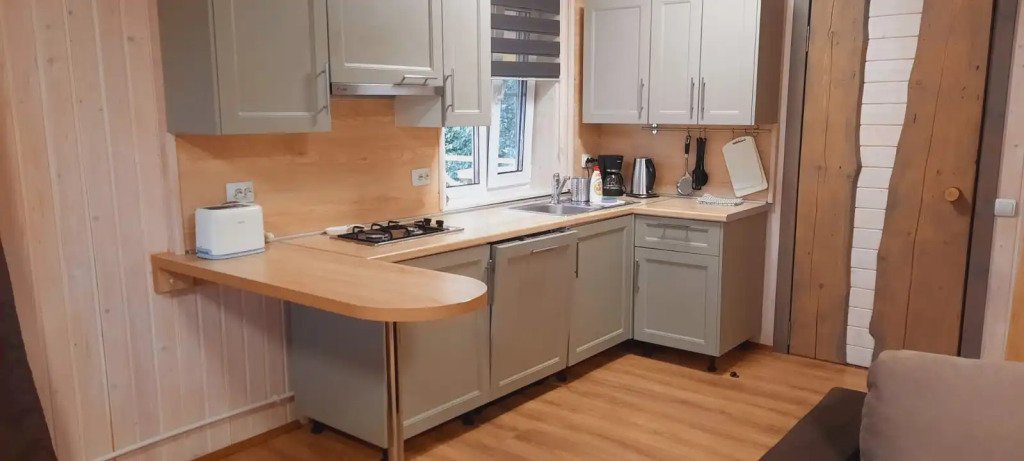 В доме кухня-гостиная с раскладным диваном и камином, две спальни с 1 двухспальной и 2 односпальными кроватями, полностью оборудованная кухня, два санузла и душ. Есть собственная терраса с мангалом и садовой мебелью.